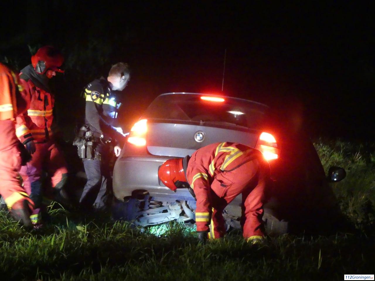 Daar raakte een auto van de weg en eindigde deels boven de sloot. Niemand raakte gewond meldt RTV Noord.