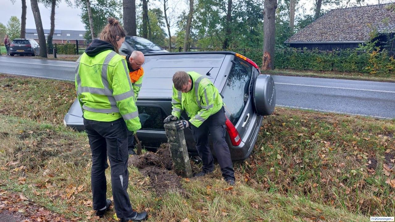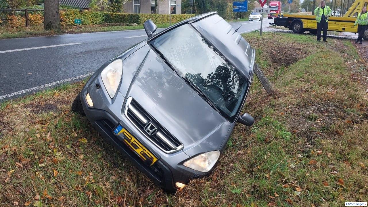 Roden – Donderdagmiddag rond 15.00 uur is op de N372, net voorbij de rotonde bij Roden richting Nietap, een auto in de greppel beland naast de J.P. Santeeweg. De bestuurder wilde vermoedelijk een tegenligger, een vrachtwagen, de ruimte geven, maar kwam daarbij in de bocht met de wielen in de berm en gleed de greppel in.