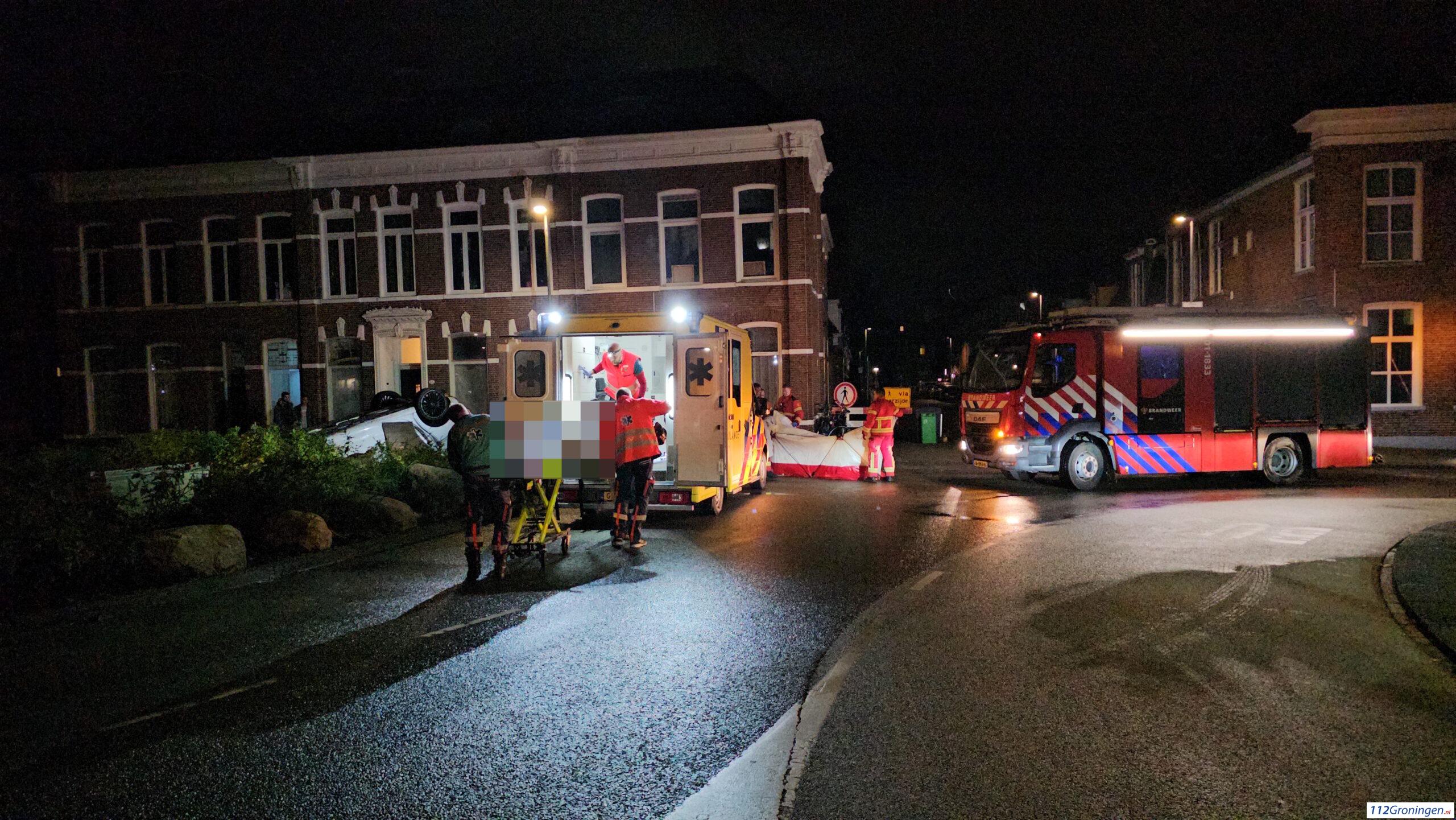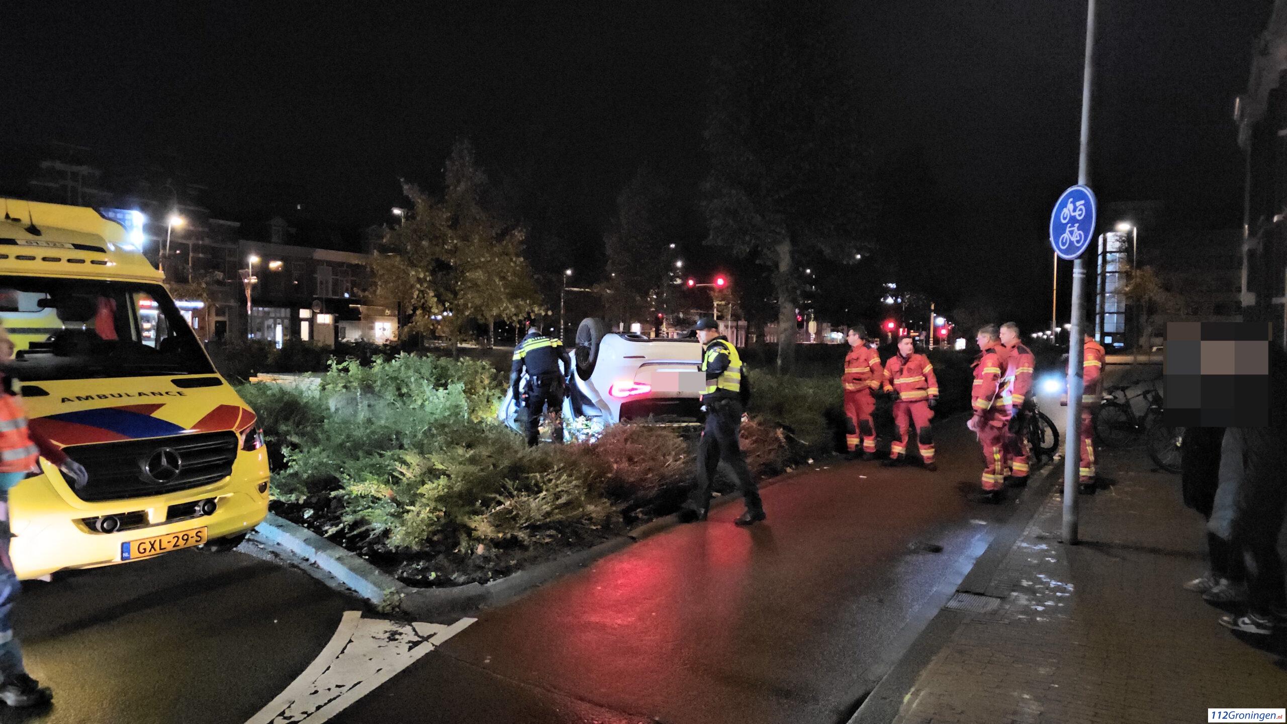 Groningen – Op het Damsterplein heeft vrijdag op zaterdagnacht een ernstig ongeval plaatsgevonden waarbij een auto op de kop in de bosjes is beland.