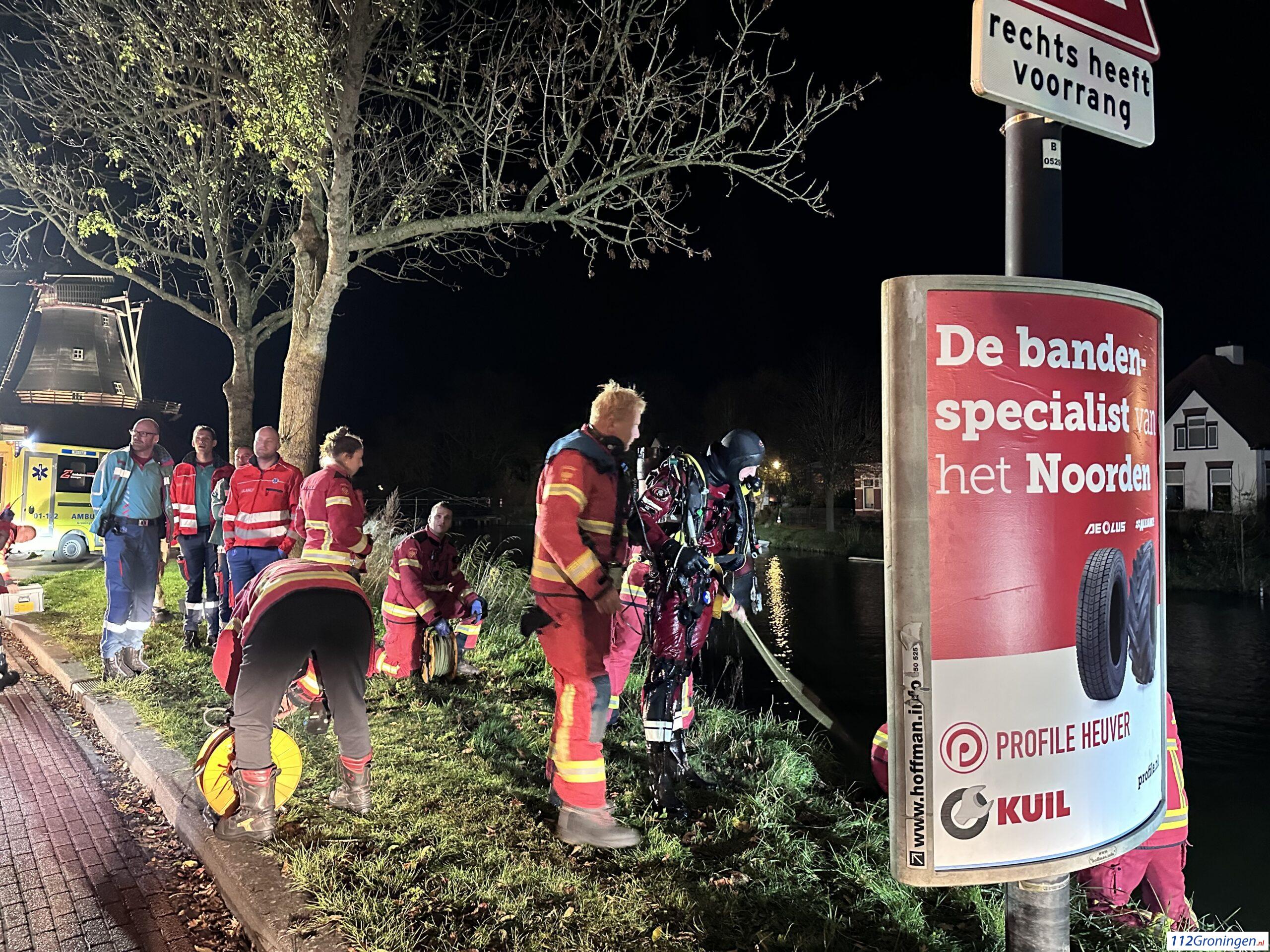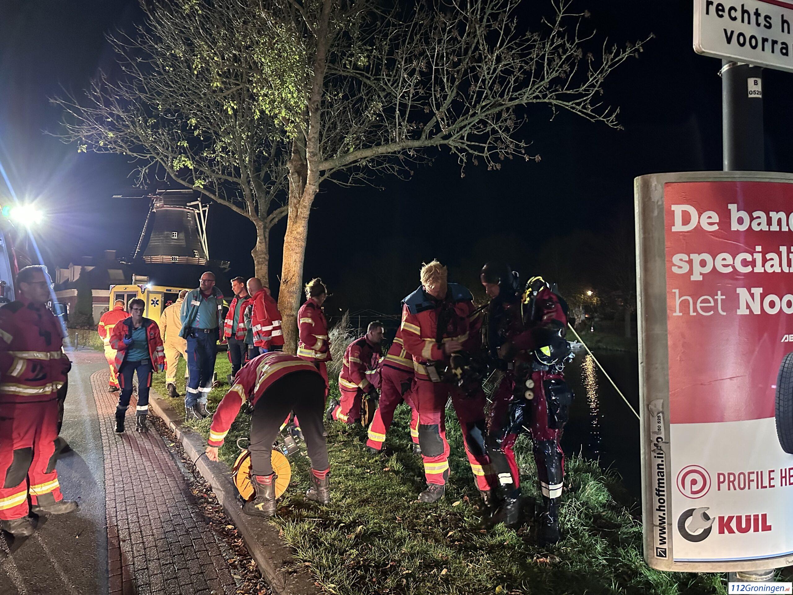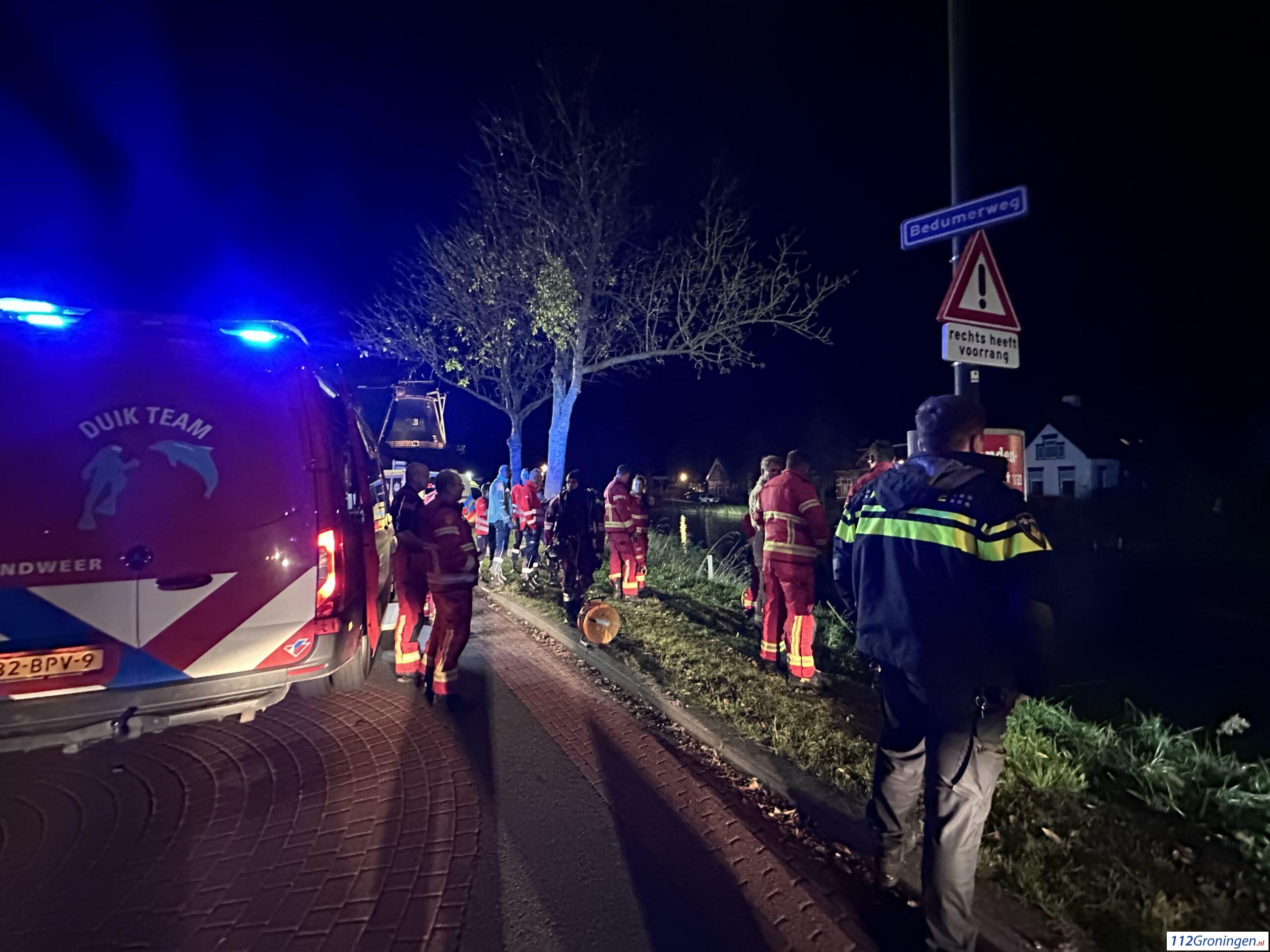 Onderdendam – Dinsdagavond even voor 22.30 uur zijn de hulpdiensten massaal uitgerukt voor een melding van een voertuig te water aan de N995 (Bedumerweg).
