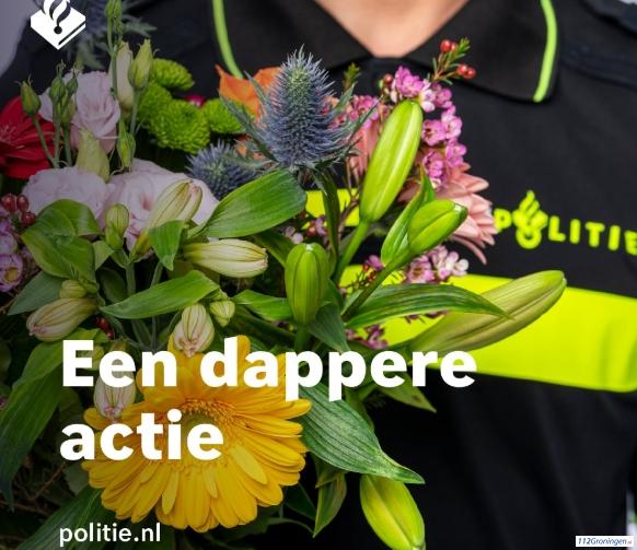 Dankzij het alerte optreden van deze omstander kon snel worden vastgesteld dat er niemand meer in het voertuig zat. Een dappere actie waarvoor de persoon een bloemetje in ontvangst mocht nemen!