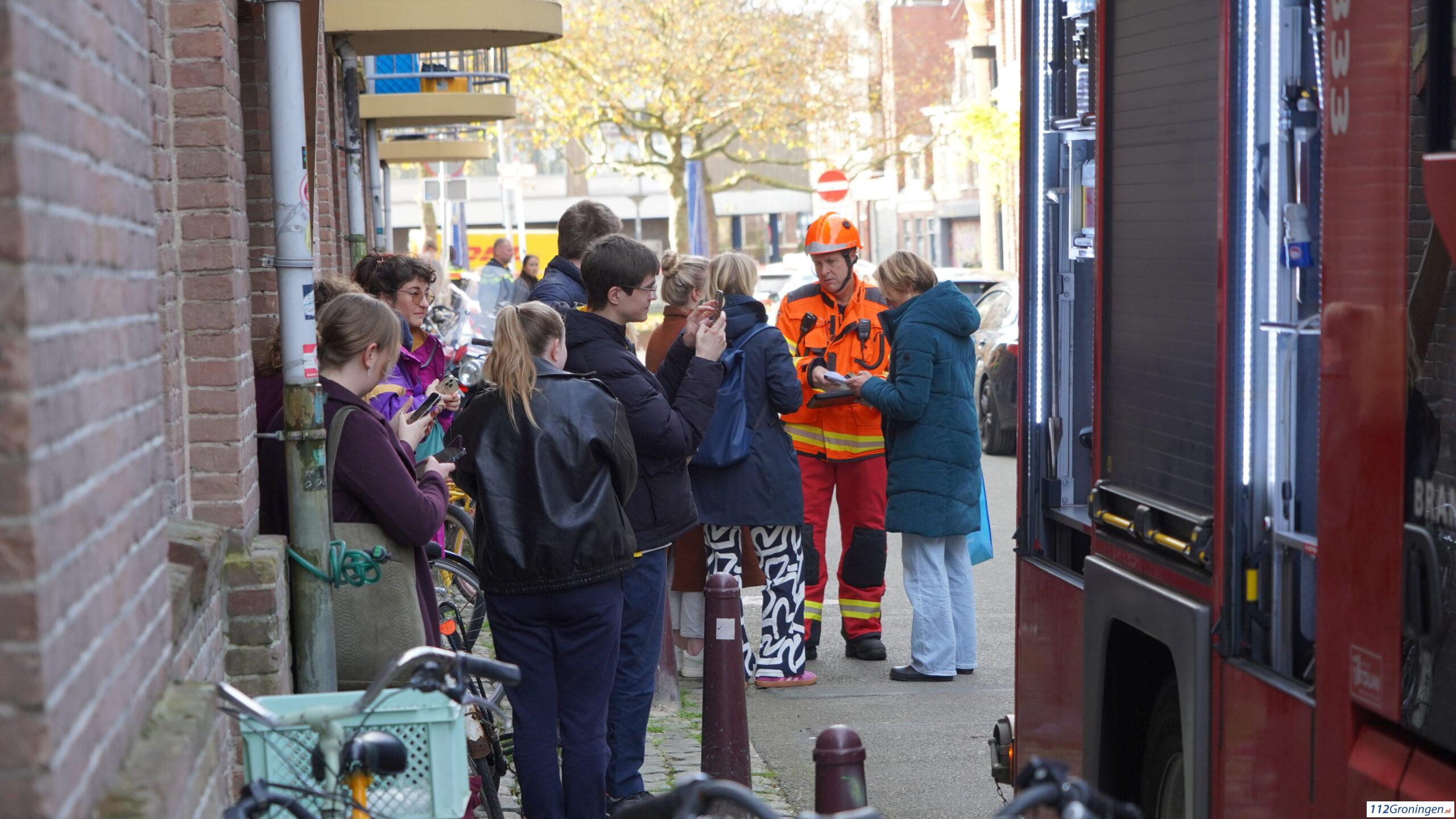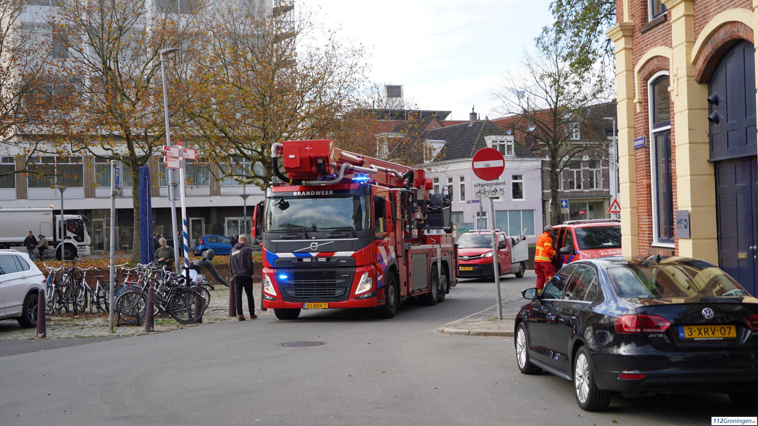 De straat was daardoor tijdelijk afgesloten. In de straat hing een brandlucht. De brandweer doet onderzoek. Het gebouw is ontruimd. Wat er exact brand is nog onbekend.