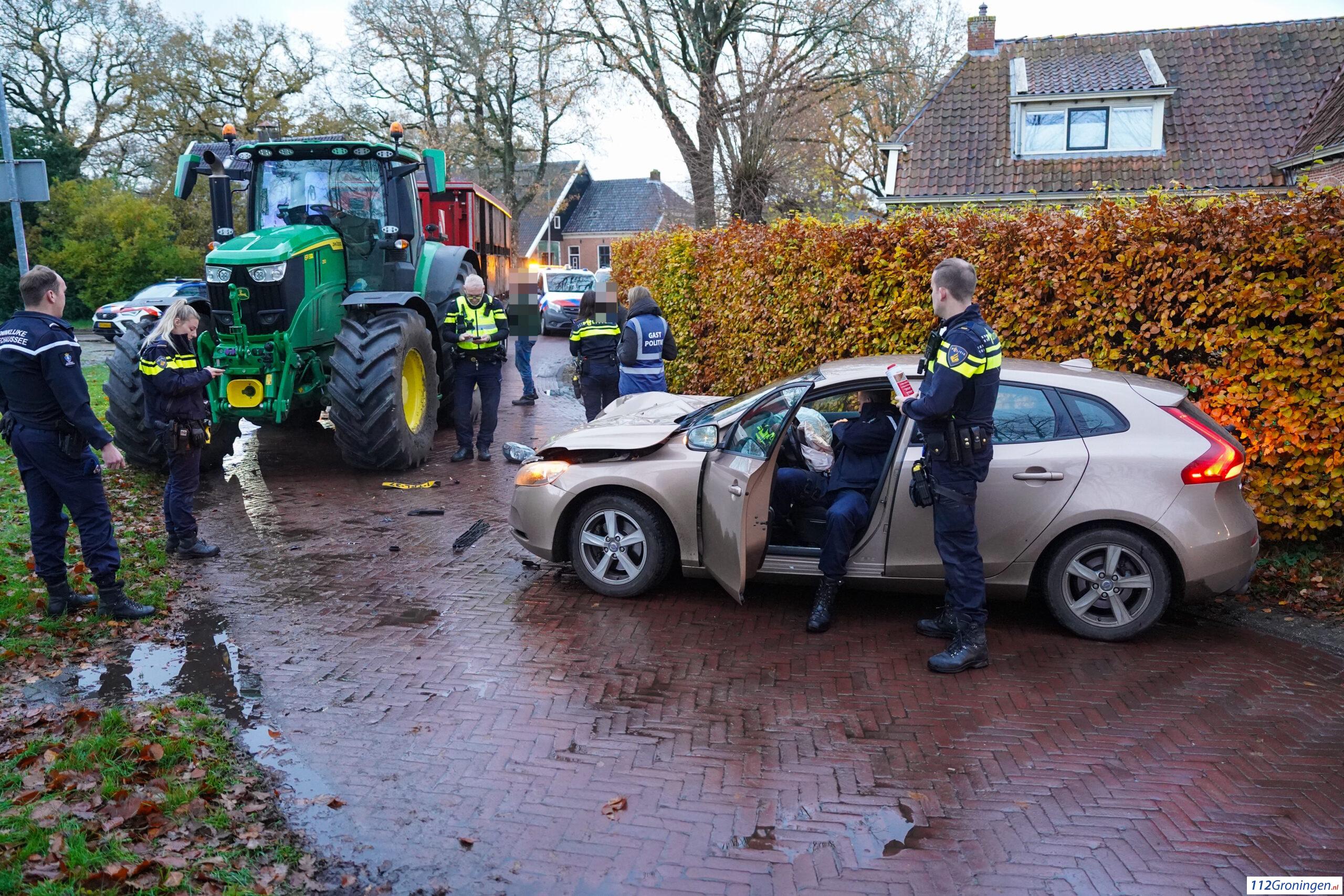 De automobilist raakte gewond en is overgebracht naar het ziekenhuis. De chauffeur van de trekker raakte niet gewond.