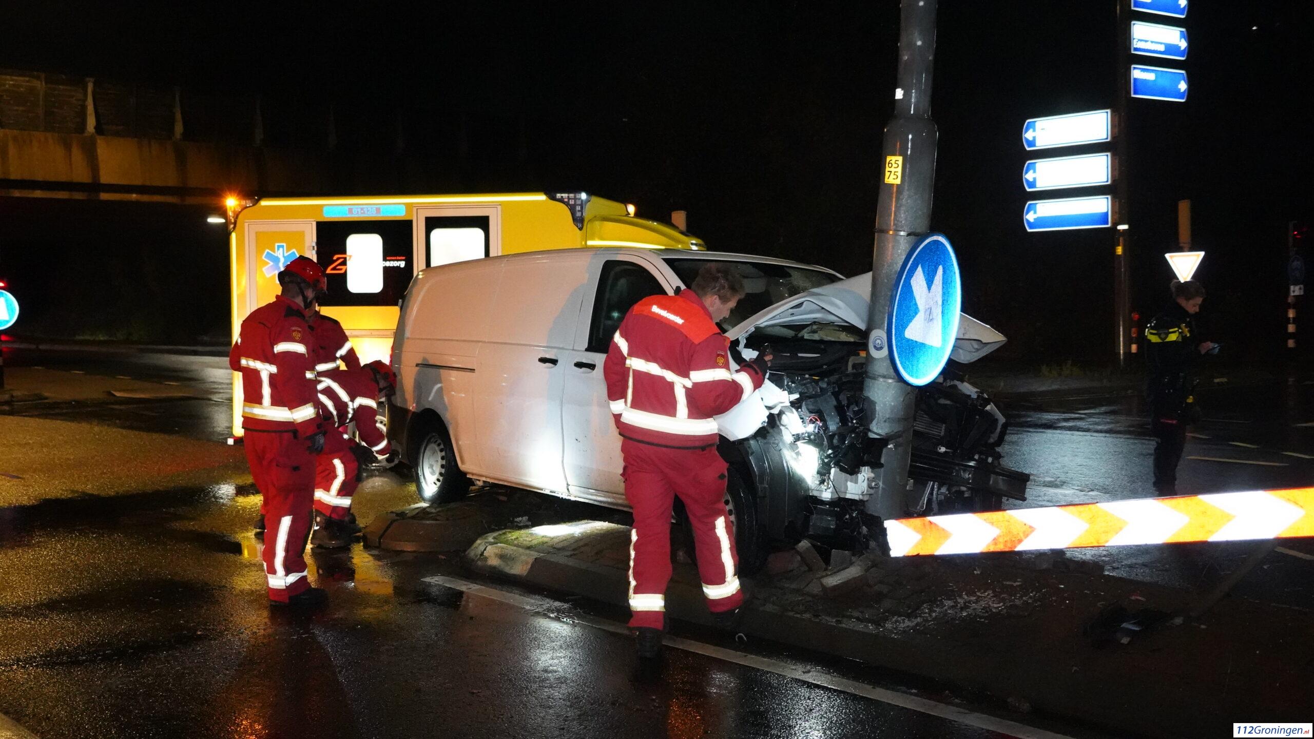 Groningen- Op de N360 heeft zondagavond laat een eenzijdig ongeval plaatsgevonden waarbij een busje tegen een verkeersportaal was gereden.
