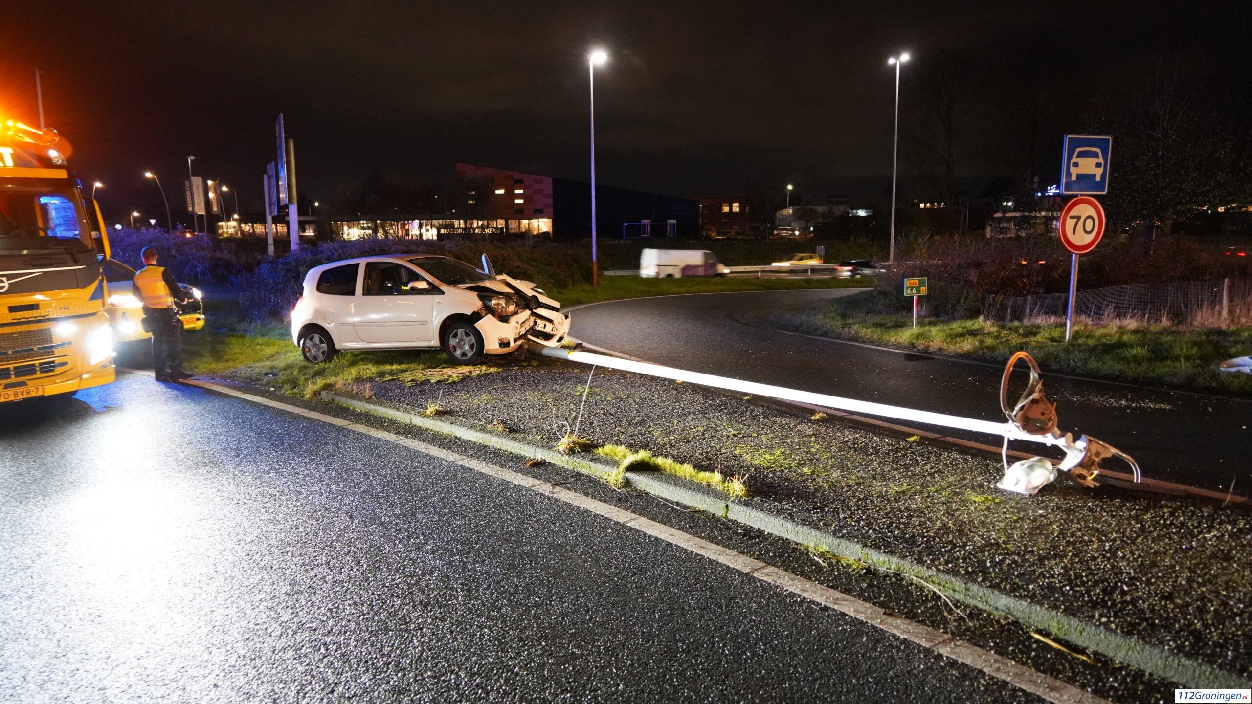 Groningen – Op de afrit N46 bij Kardinge heeft dinsdagmiddag rond 17:30 uur een eenzijdig ongeval plaatsgevonden waarbij een auto tegen een lantaarnpaal is gereden.