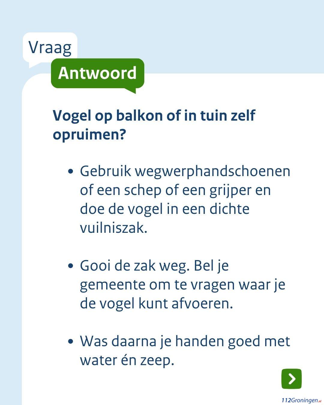 Landelijk – Dode vogel gevonden? Deze kan besmet zijn met het vogelgriepvirus. Raak daarom de dode vogel nooit aan met blote handen. Opruimen? Alleen met bescherming. Zo kunnen andere dieren niet meer besmet worden door die vogel.