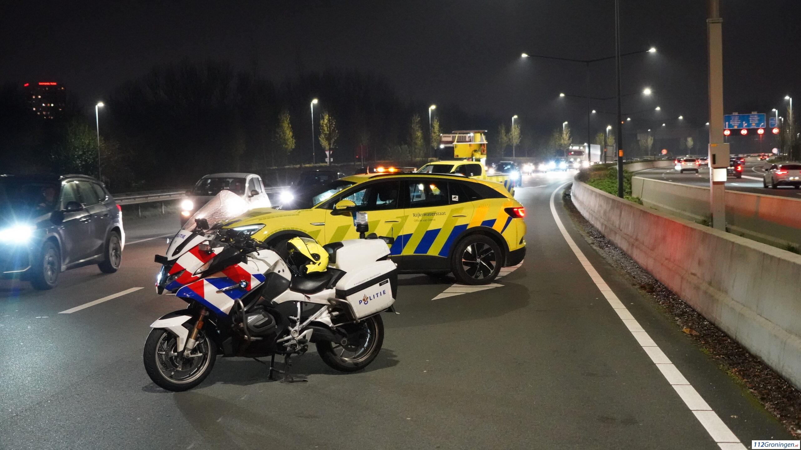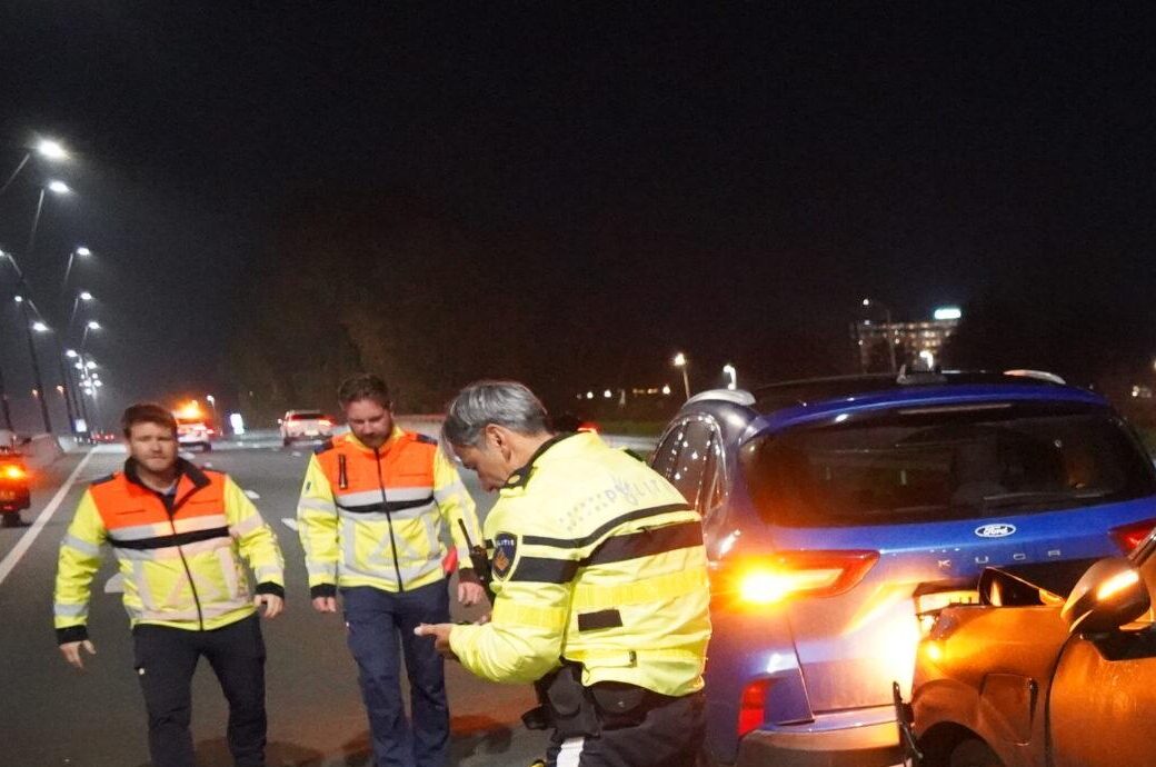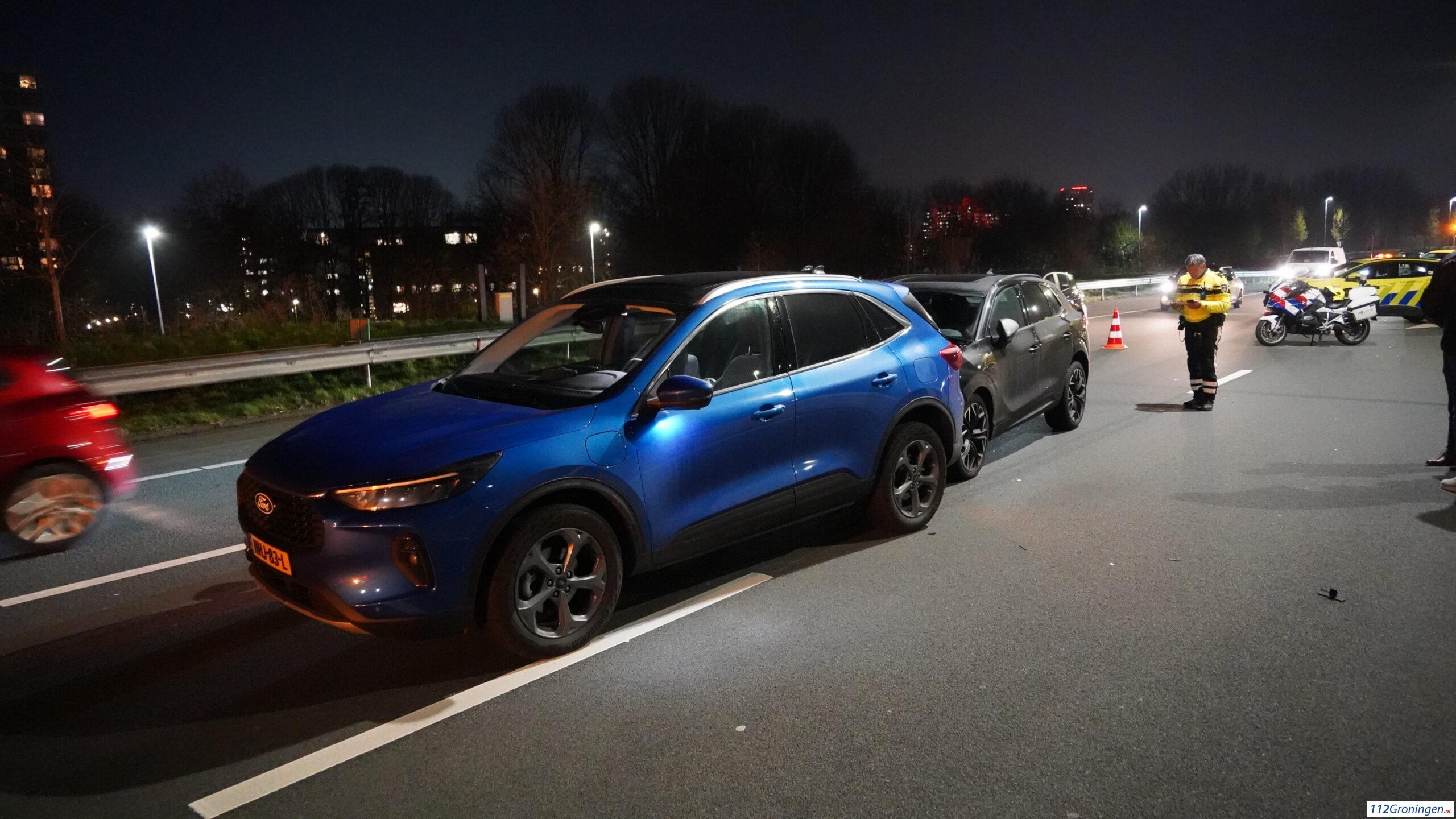 Groningen – Op de A28 tussen Groningen en Haren heeft donderdag rond 17:45 uur ook een forse kop/ staart aanrijding plaatsgevonden tussen twee voertuigen.