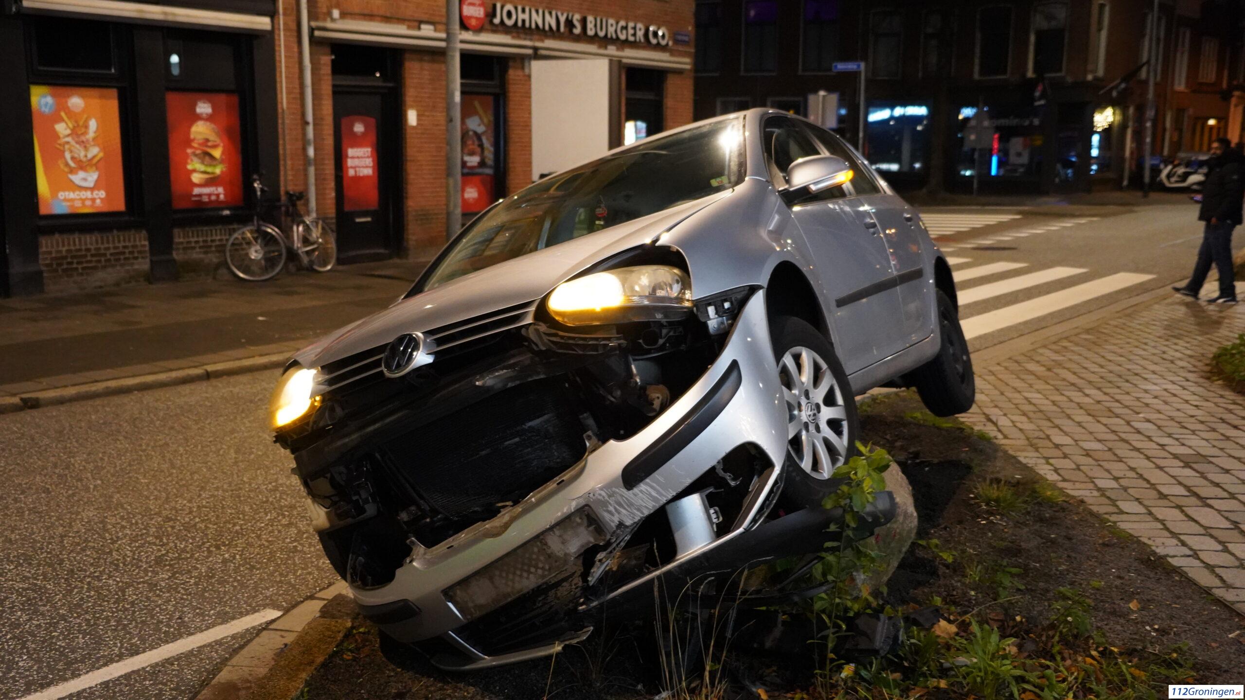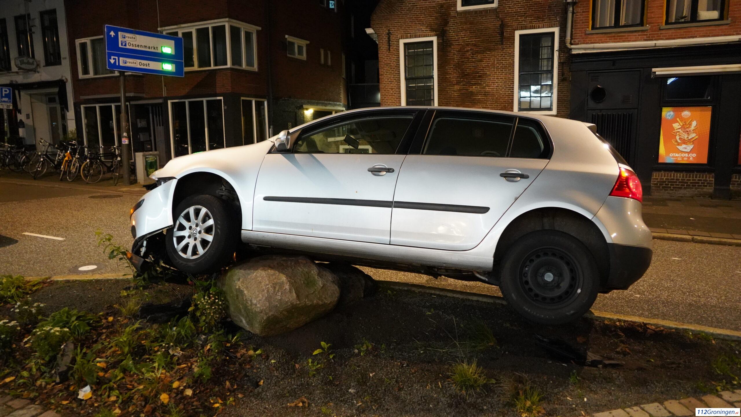 Groningen – Op de Turfsingel ter hoogte van de Nieuwe Ebbingestraat heeft vrijdag op zaterdag een eenzijdig ongeval plaatsgevonden waarbij een auto op 2 keien is beland.