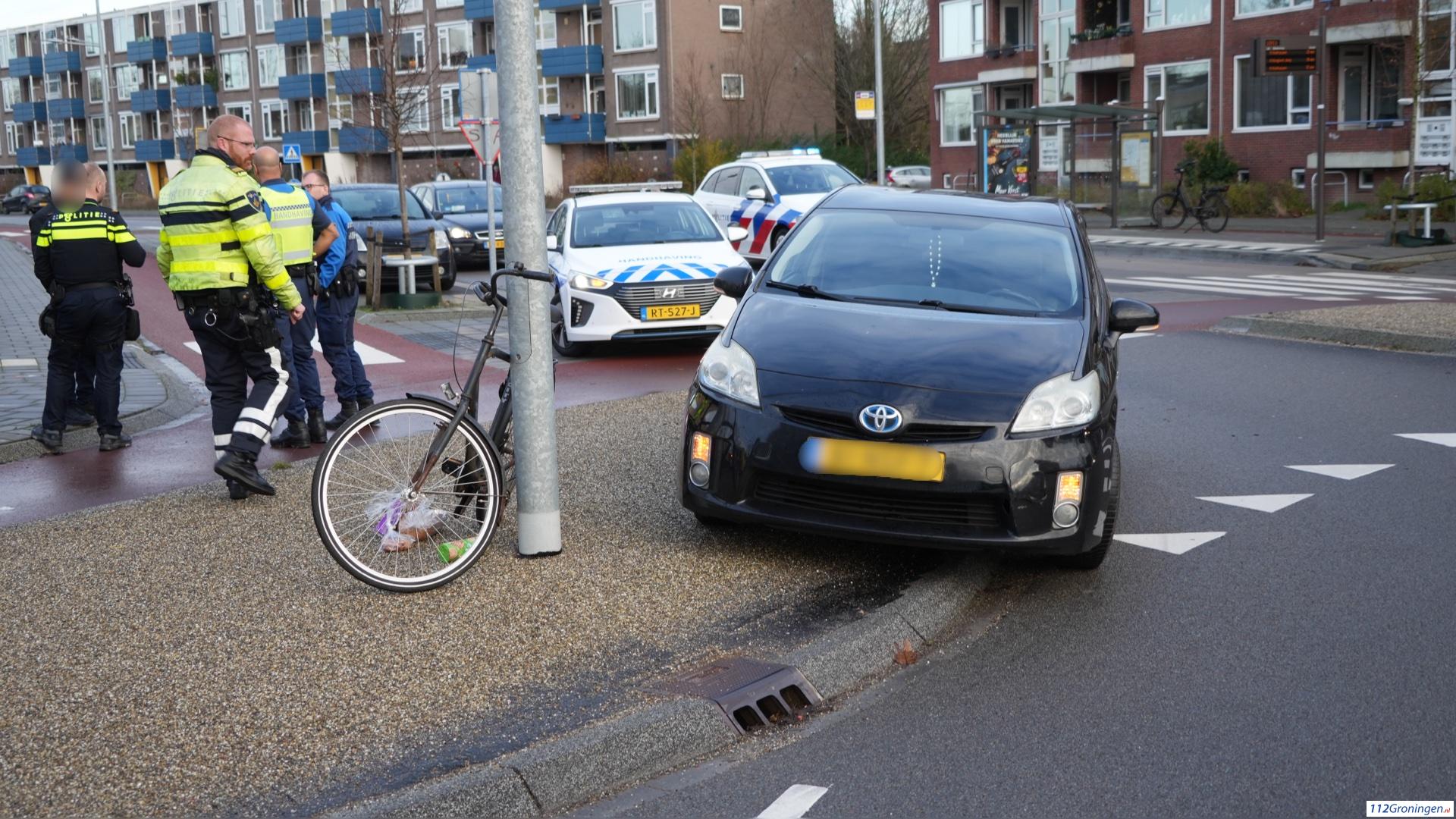 Groningen – Op de rotonde van de Vondellaan met de Van Iddekingeweg in Groningen heeft zaterdag een aanrijding plaatsgevonden tussen een auto en een fietser.