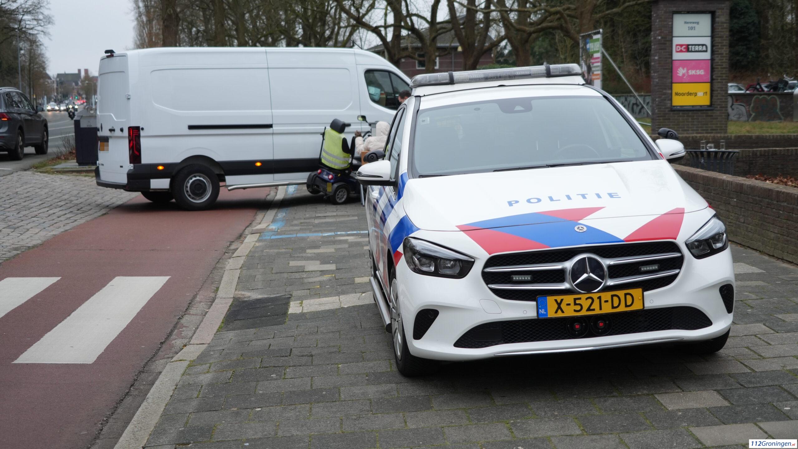 Groningen – Op de Hereweg ter hoogte van het Terra college heeft dinsdagmiddag een aanrijding plaatsgevonden tussen een bestelbus en een scootmobiel.