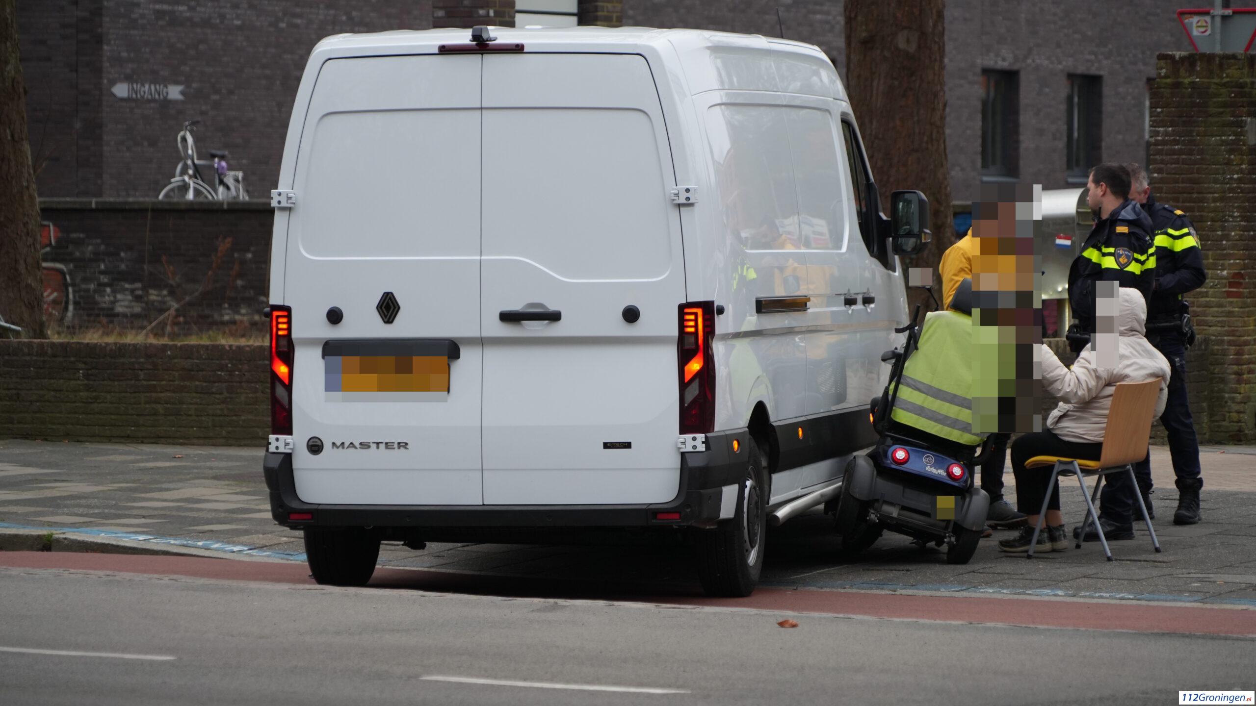 Bestelbus en scootmobiel botsen op de Hereweg