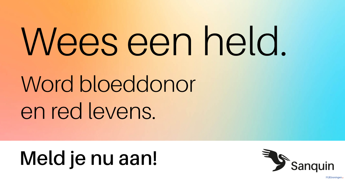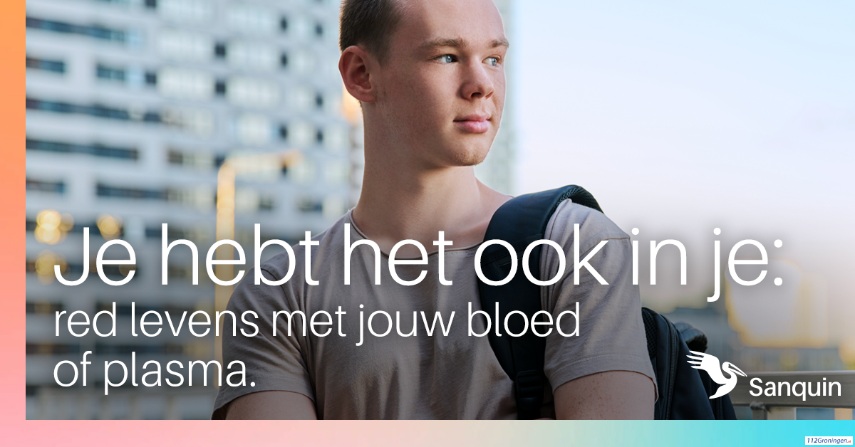 Groningen – Je hoeft geen dokter of brandweerman te zijn om levens te redden! Als bloed- of plasmadonor bij Sanquin red of verbeter je levens van duizenden patiënten in Nederland. Wist je dat één op de vier mensen ooit bloed nodig heeft? Als donor heb je grote impact op het leven van bijvoorbeeld mensen met kanker, verkeersslachtoffers of vrouwen én baby’s na een zware bevalling.