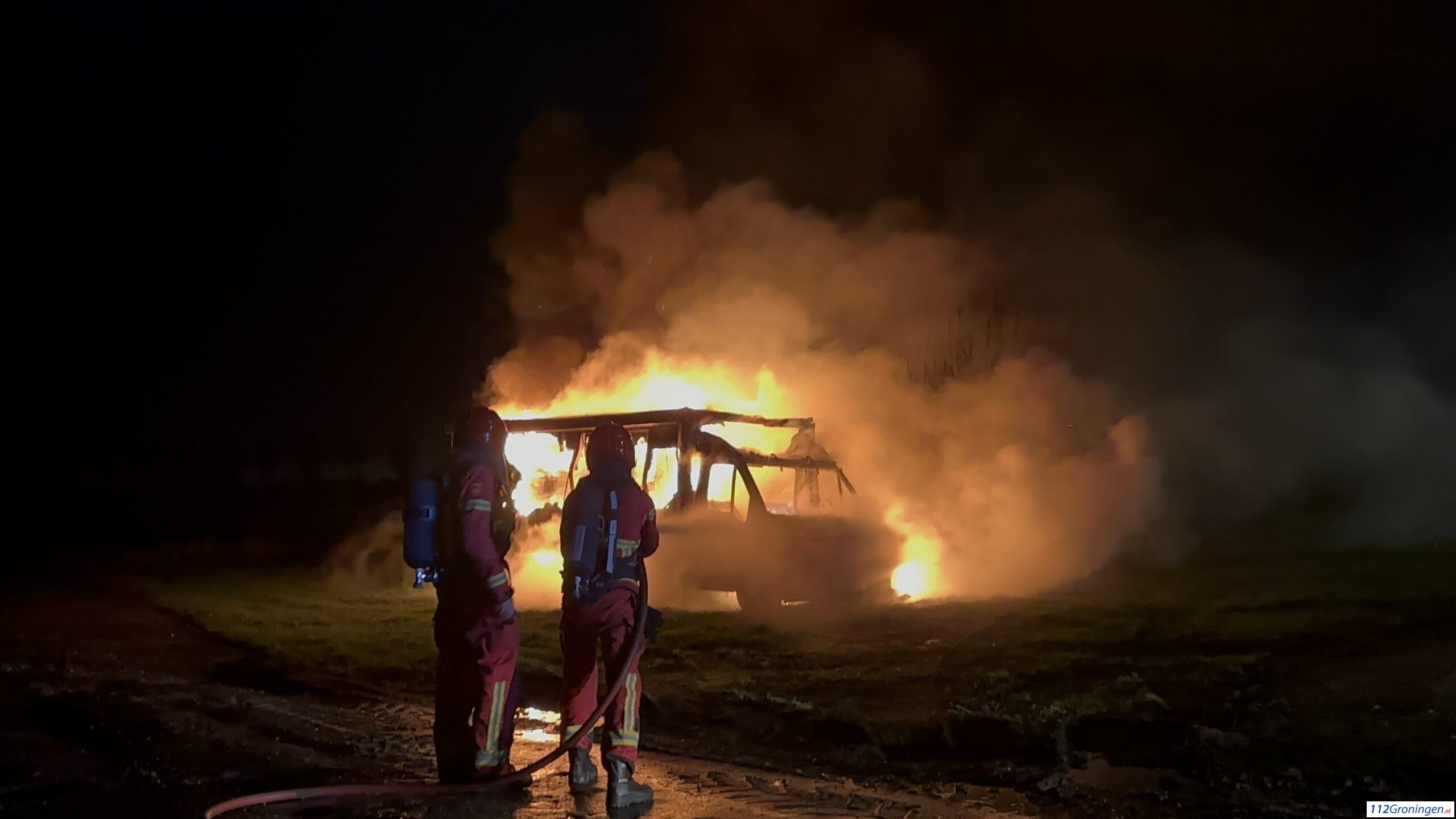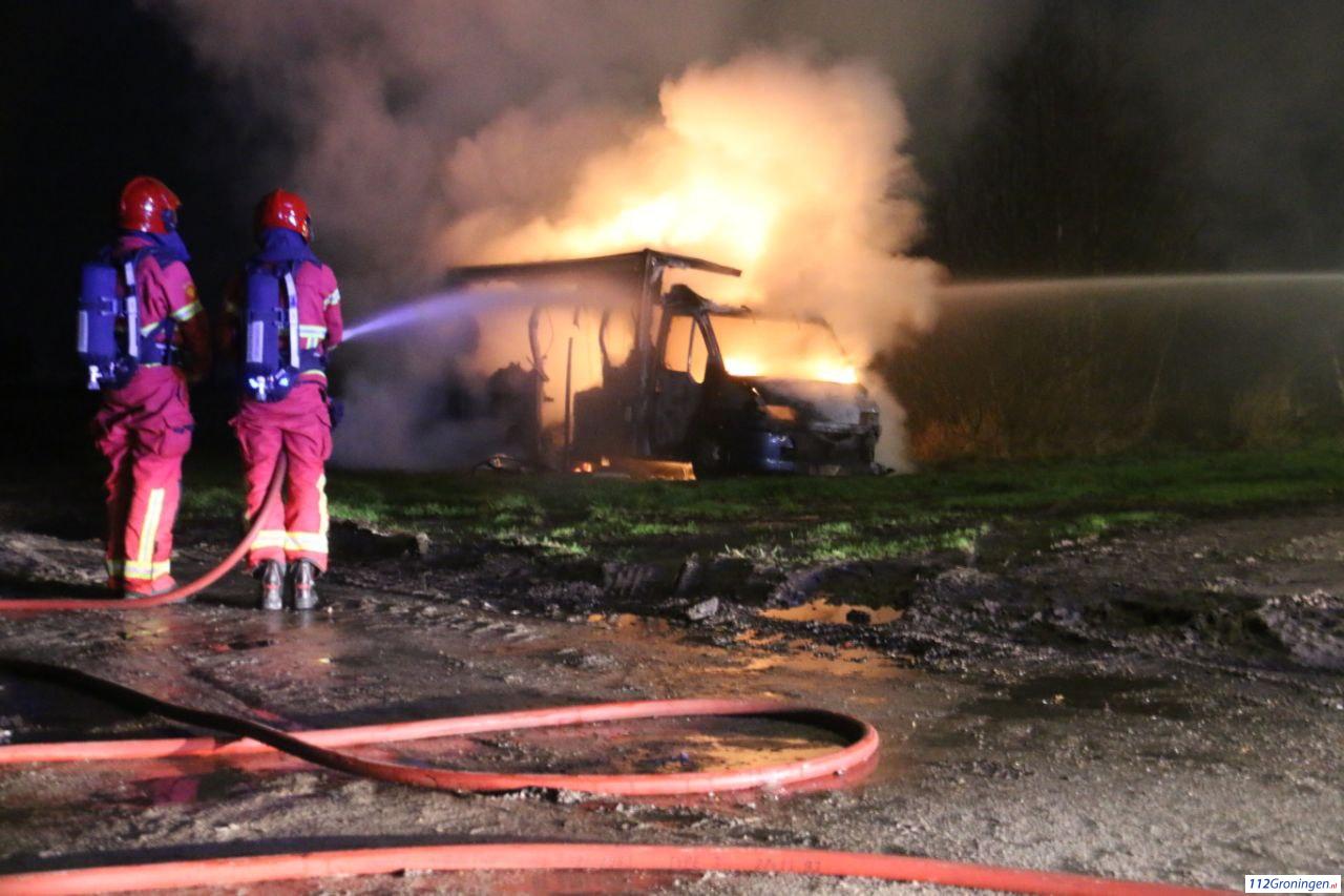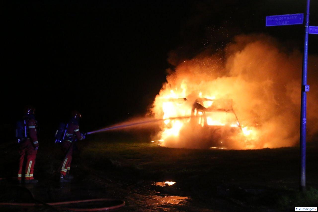 Bij aankomst van de brandweer kwamen de vlammen metershoog uit de camper. Een waterwagen moest worden opgeroepen om meer water ter plaatse te laten komen. De brandweer heeft de brand geblust.