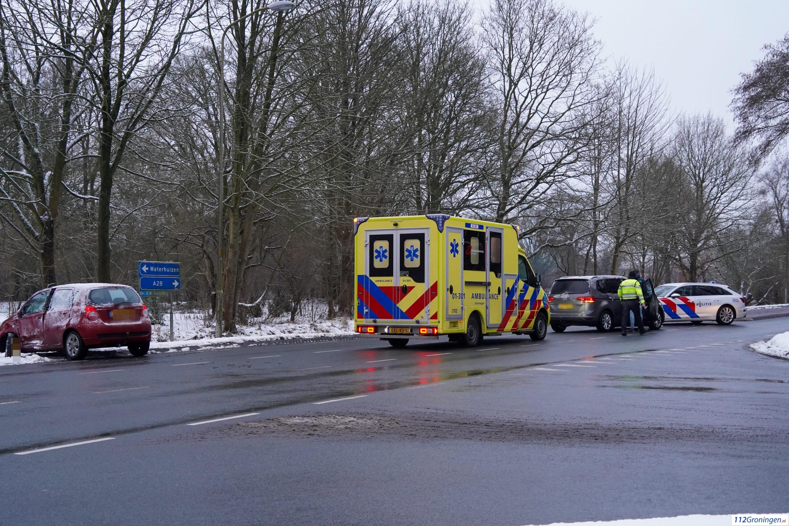 1 persoon gaat mee naar ziekenhuis. Of de gladheid een rol speelde is niet bekend.