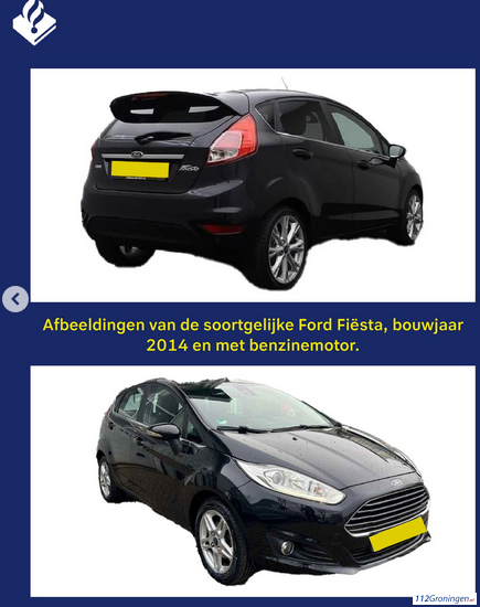 In het onderzoek zijn we nu op zoek naar meer informatie over een Ford Fiësta, die vlak voor de explosie richting het gemeentehuis aan de Johan Modastraat reed. We weten dat omdat de auto is te zien op camerabeelden uit de omgeving. We houden er rekening mee dat deze auto betrokken is geweest bij de explosie óf dat de inzittende belangrijke getuige zijn geweest van wat er precies is gebeurd. Het gaat om een donkere (zwarte) Ford Fiësta (hatchback) uit het bouwjaar 2014 (benzine). Op de foto is een soortgelijk voertuig te zien.
