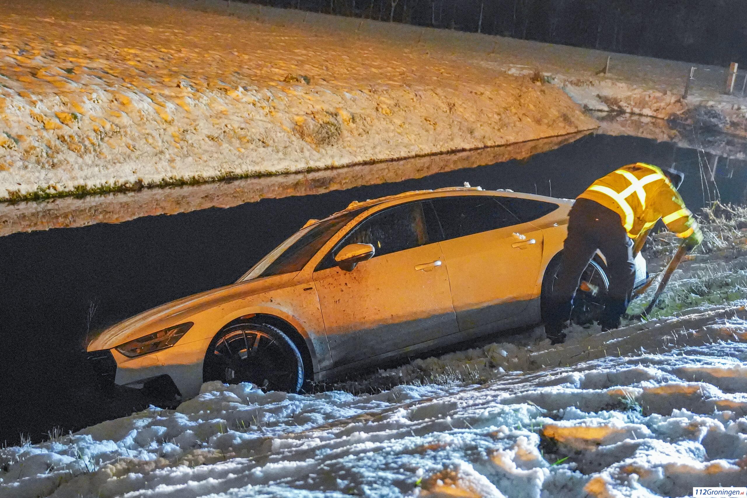 Leek – Op de N372 bij Leek is maandagavond een auto door gladheid van de weg geraakt en in een sloot beland. De bestuurder bleef ongedeerd.