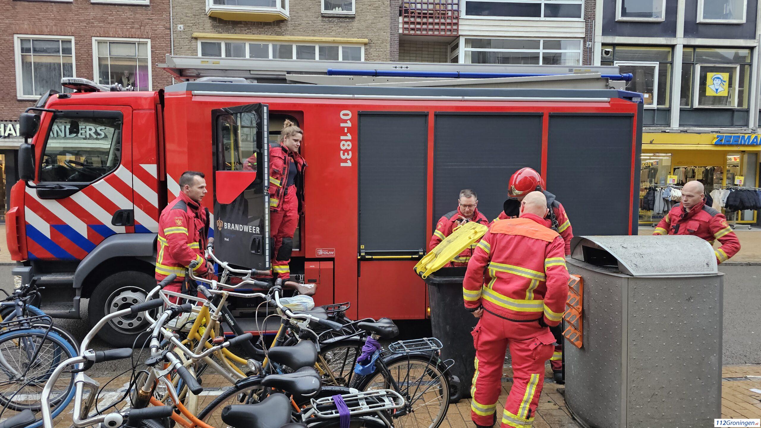 Groningen- Bij de Albert Heijn aan de Oude Ebbingestraat heeft dinsdagmiddag een afvalcontainer vlam gevat. De brandweer was snel ter plaatse.