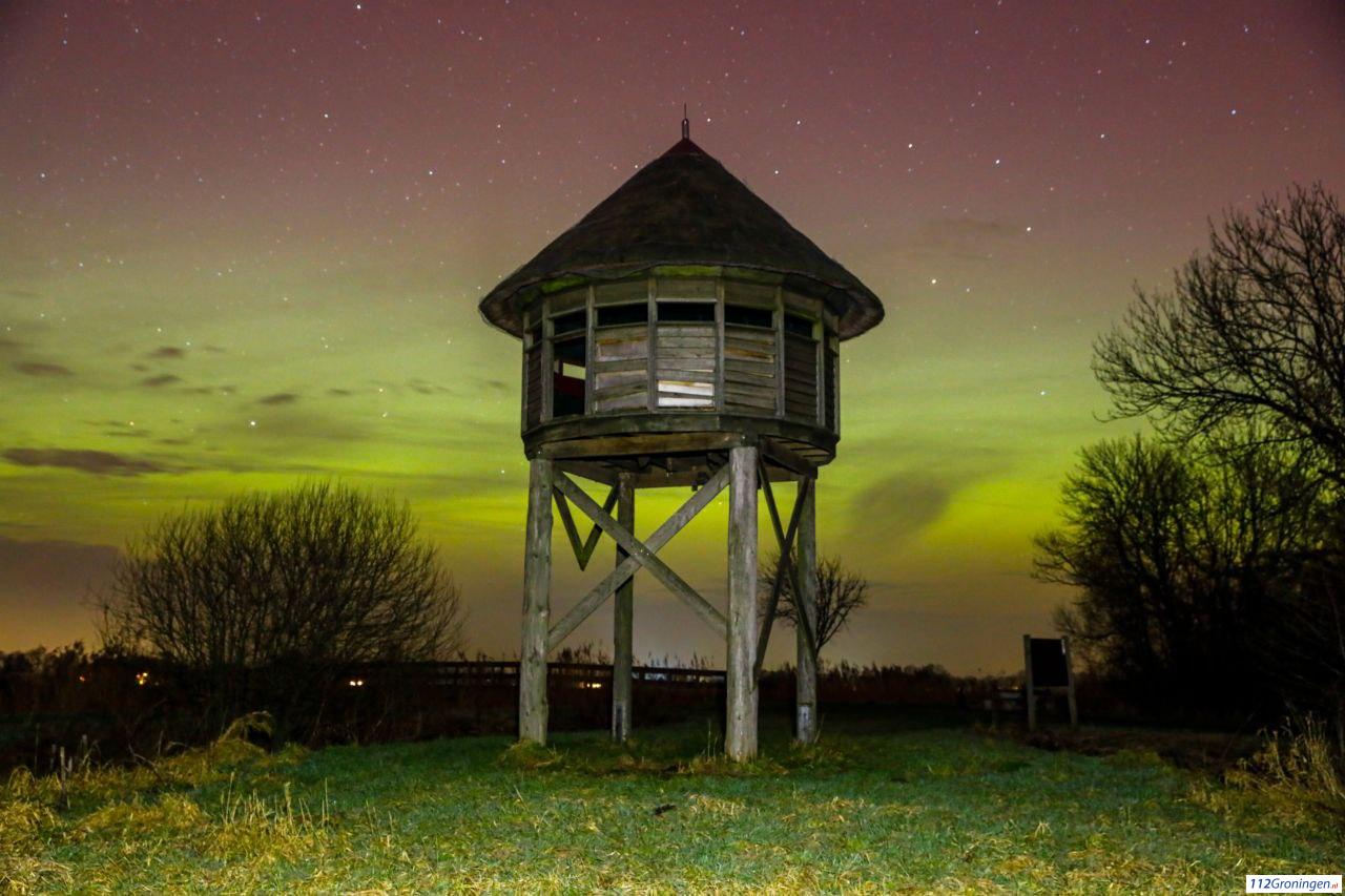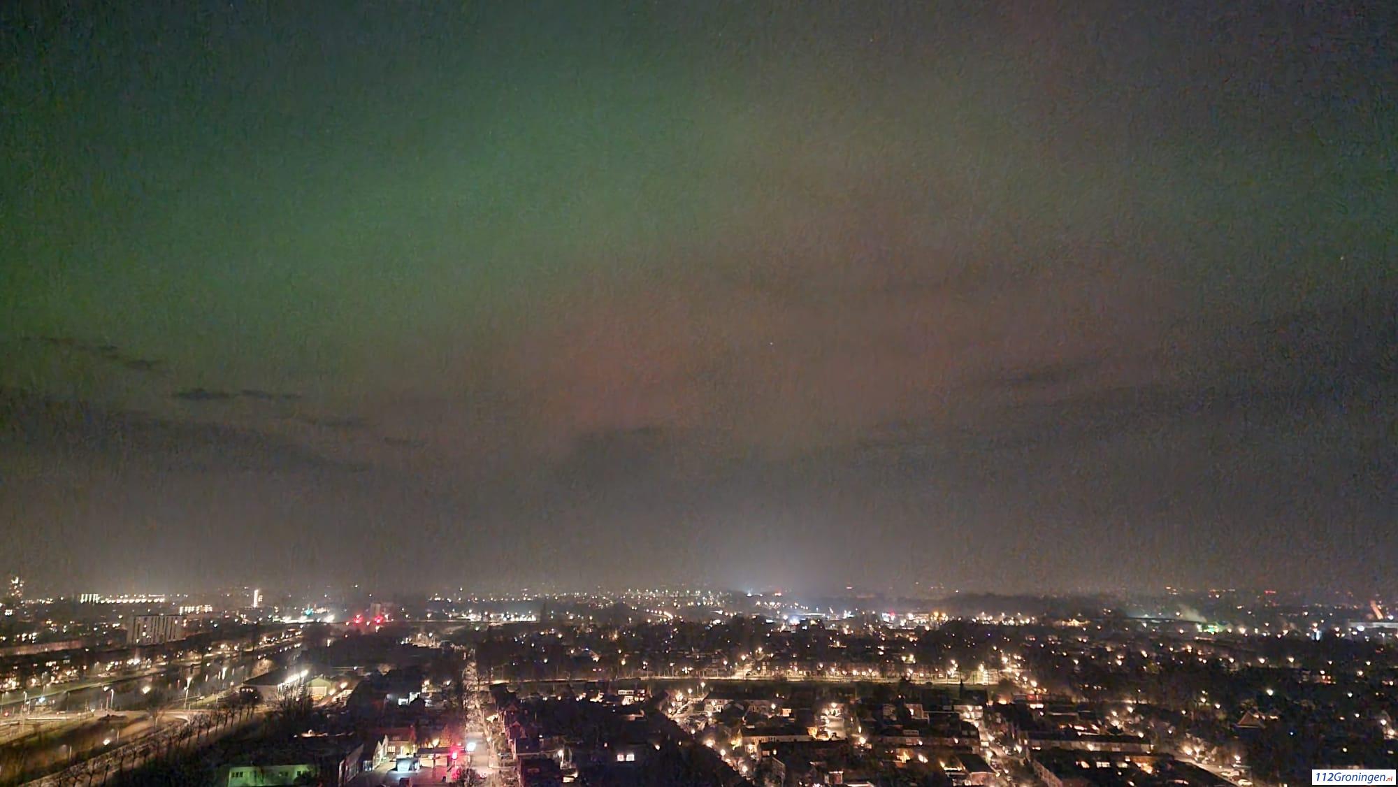 Een verre reis naar Scandinavië was deze keer helemaal niet nodig: zelfs in Groningen verscheen het noorderlicht aan de hemel. Groenige, paarse en roze lichtsluiers bewogen langzaam over het firmament en zorgden voor een bijna magisch schouwspel.