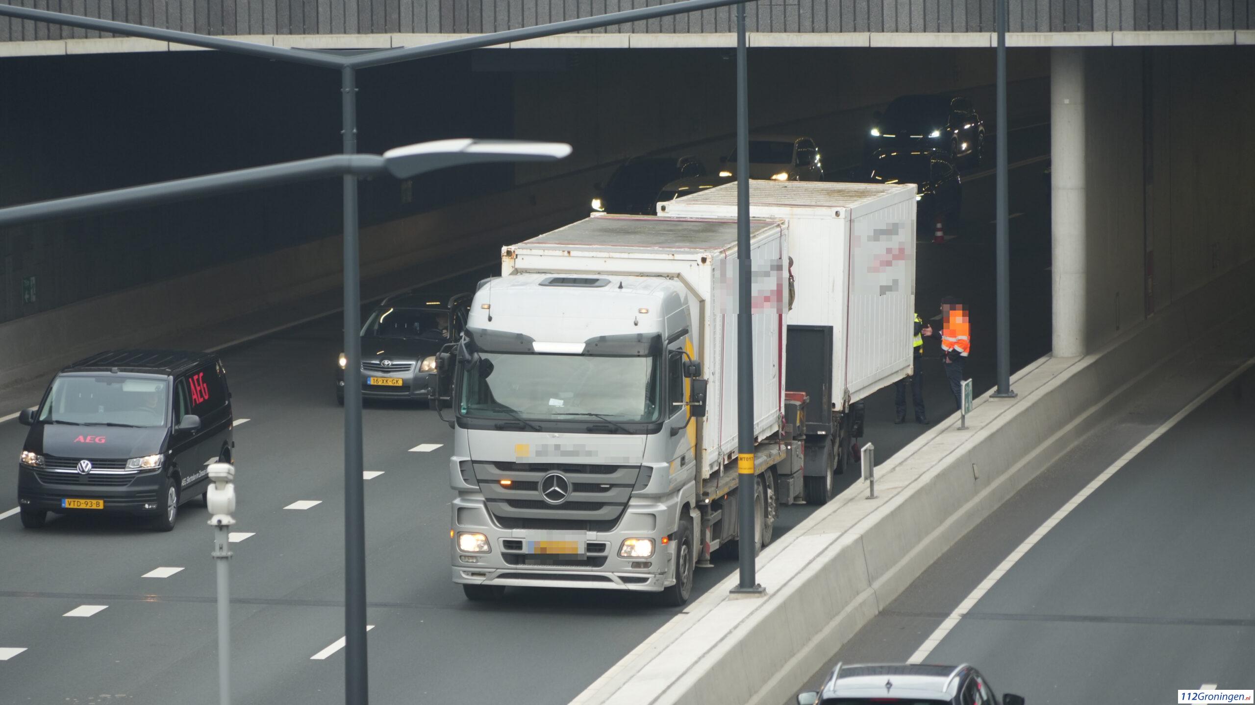 Groningen- In de verdiepte ligging N7 tussen knooppunt Euvelgunne en knooppunt Julianaplein stond woensdag rond 11:50 uur een vrachtwagen stil. Hulpdiensten zijn ter plaatse gekomen.