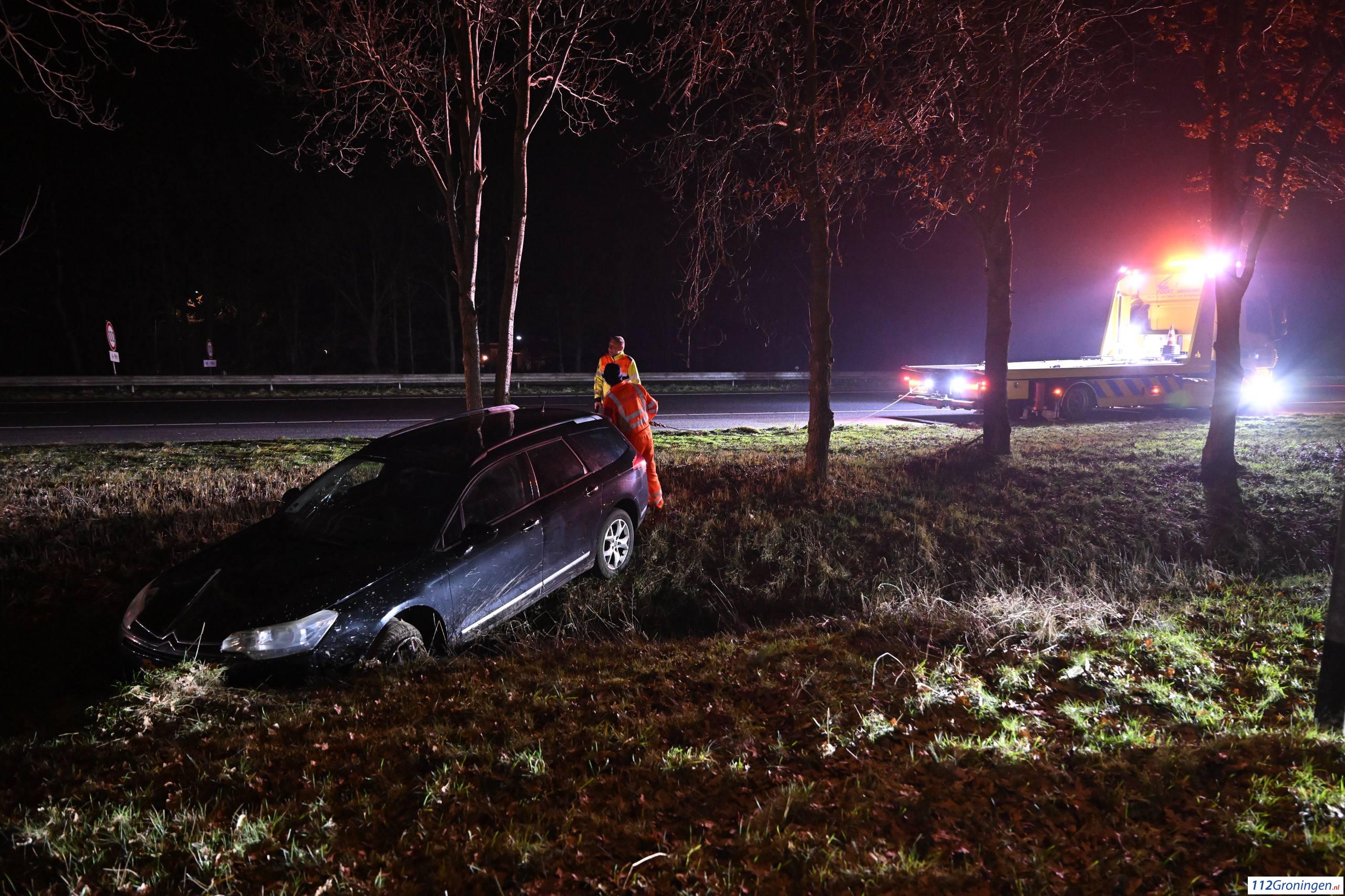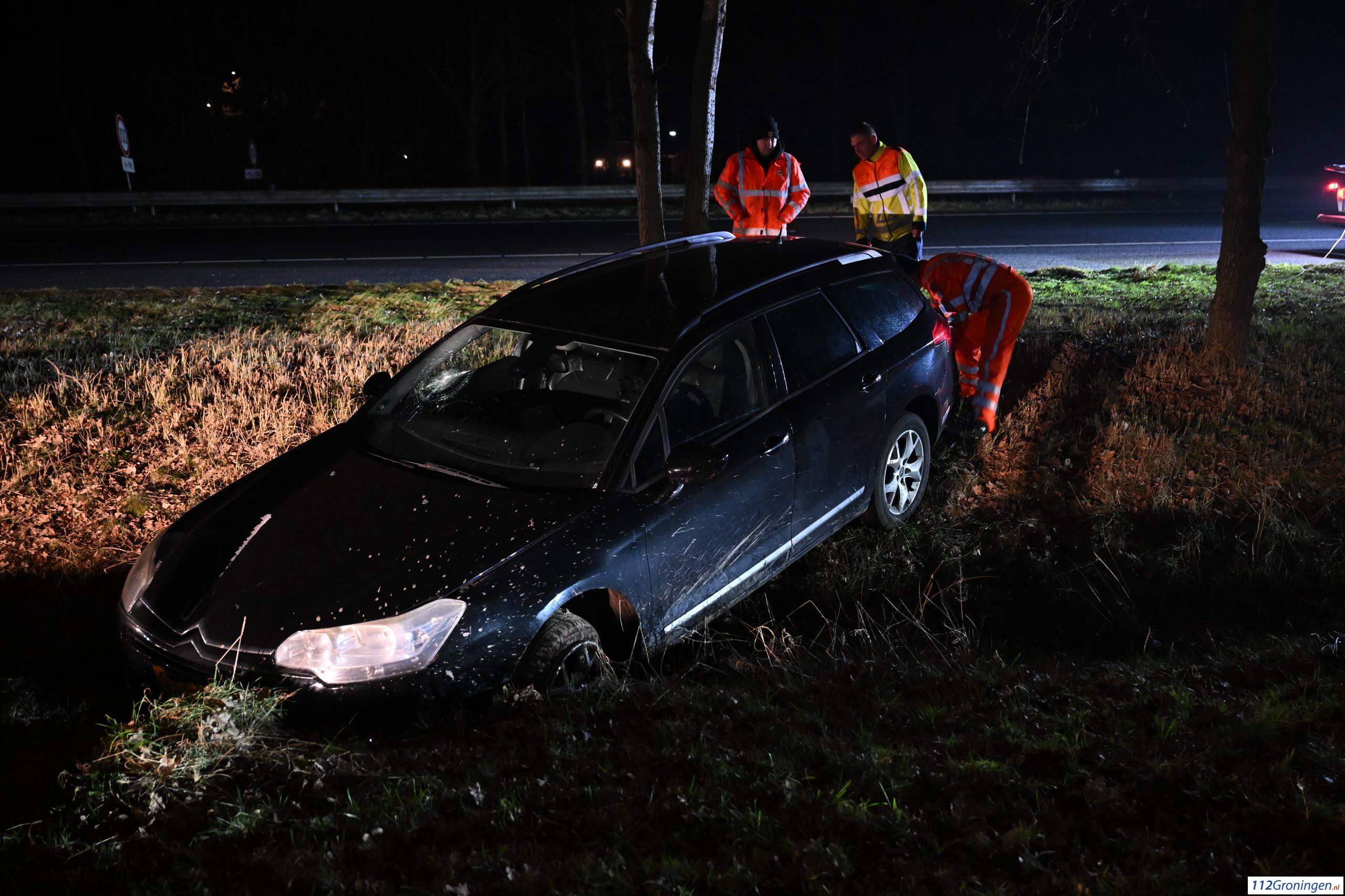 Parallel aan de snelweg, ter hoogte van Midwolde, raakte het voertuig even later van de weg en belandde in een sloot. De bestuurder is daarna te voet gevlucht.