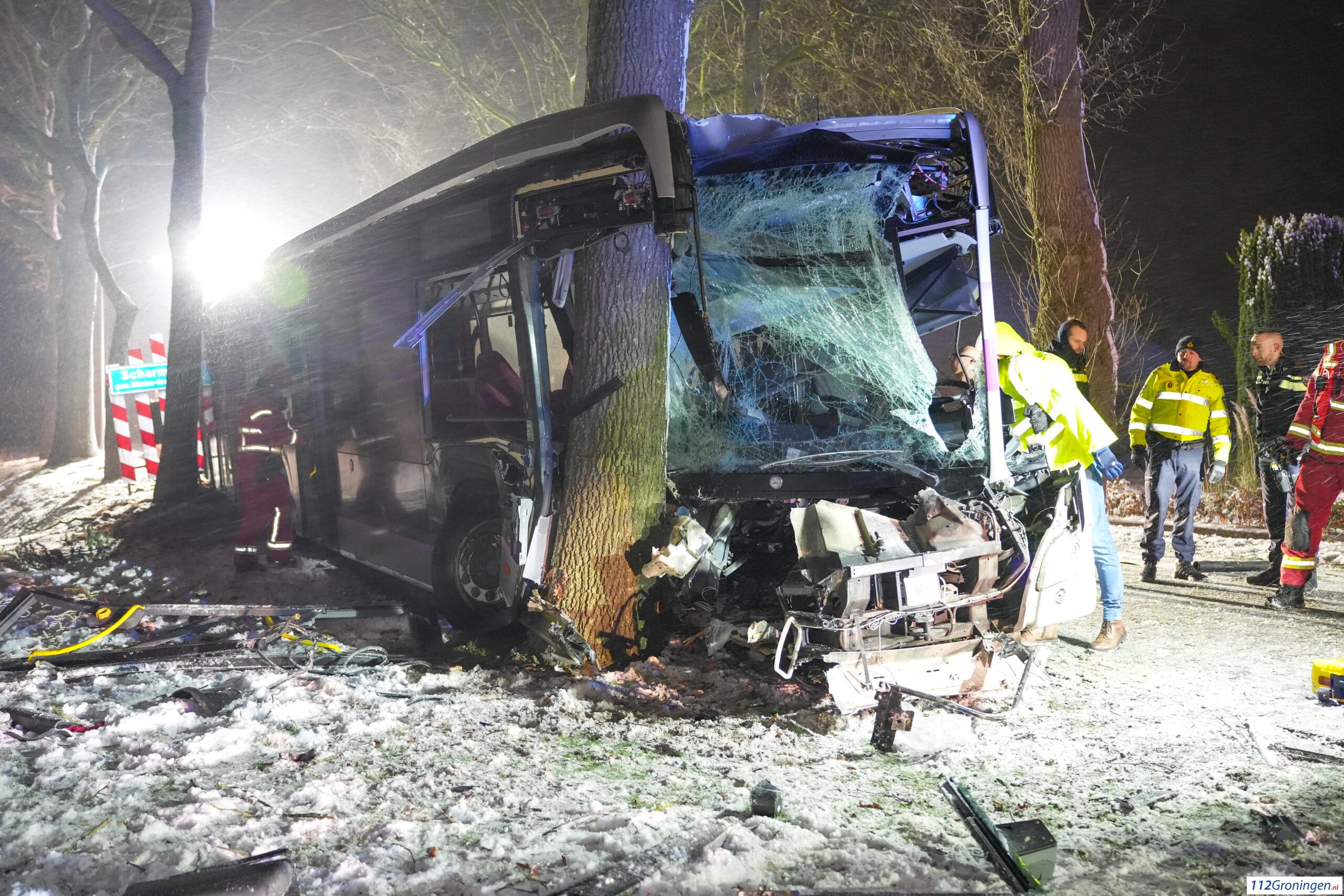 De buschauffeur raakte door het ongeluk ernstig bekneld. Meerdere ambulances en brandweerkorpsen uit de omgeving en de stad Groningen kwamen ter plaatste.