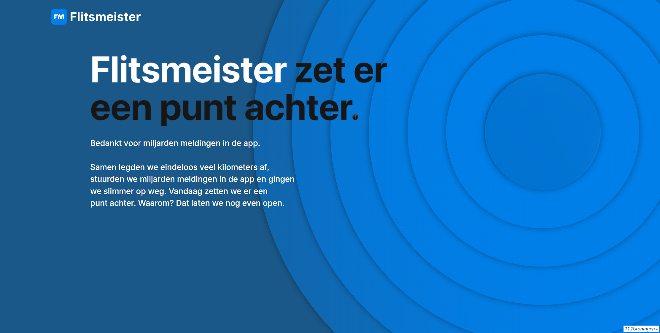 Flitsmeister meldt op hun website: “Bedankt voor miljarden meldingen in de app. Samen legden we eindeloos veel kilometers af, stuurden we miljarden meldingen in de app en gingen we slimmer op weg.