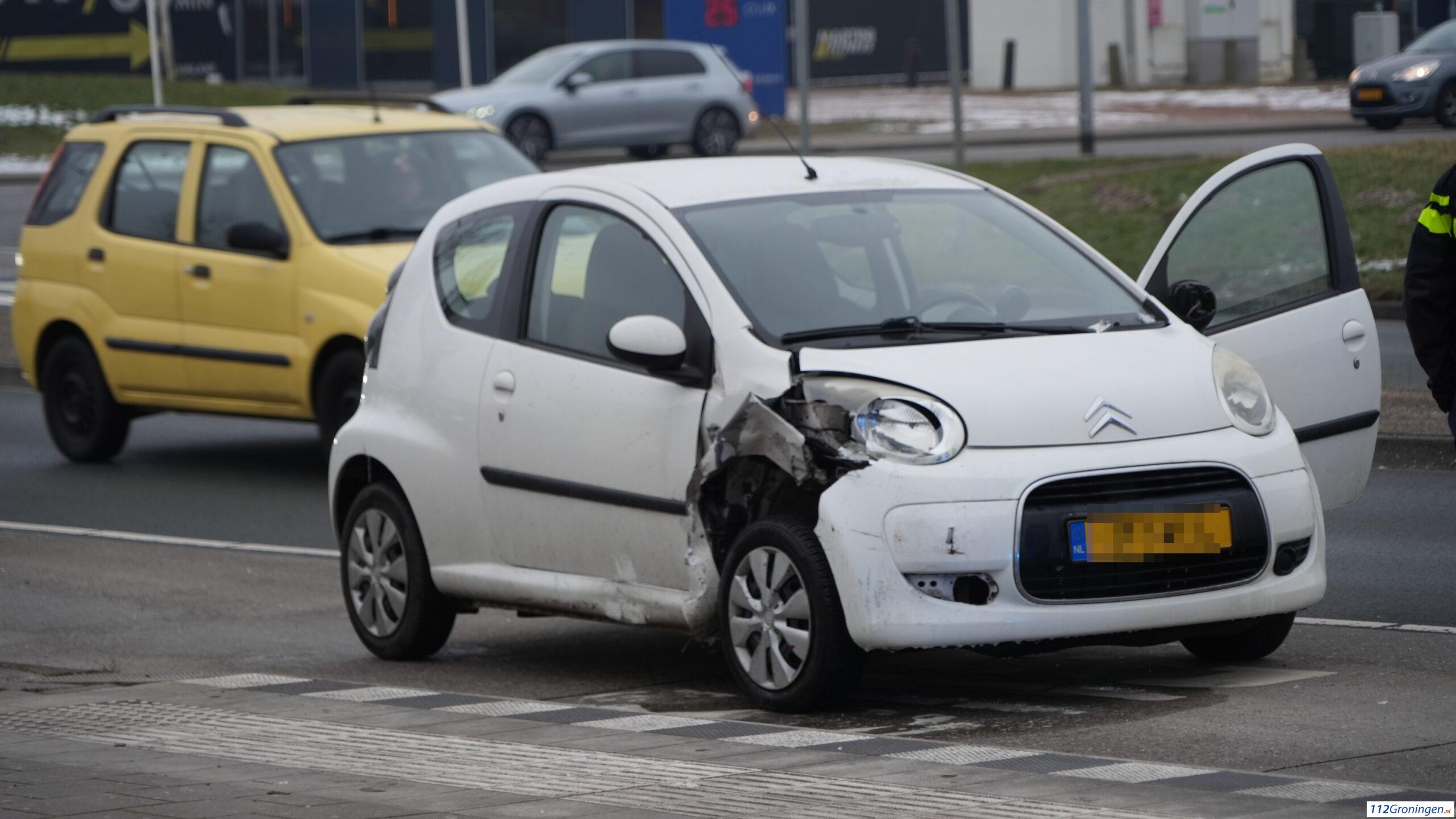 Groningen – Op de kruising Sint Petersburgweg/ Stettinweg/ Woonschepenstraat heeft donderdagmiddag een forse aanrijding plaatsgevonden tussen twee auto’s. De schade was groot.