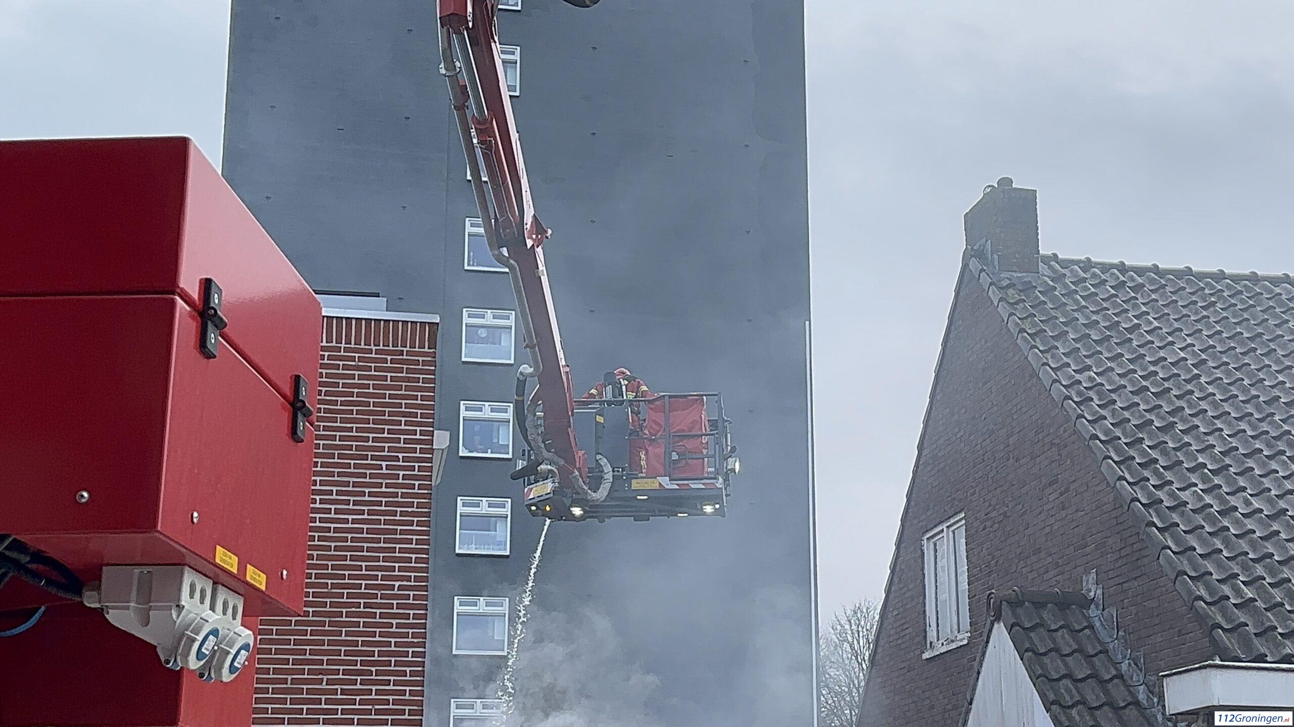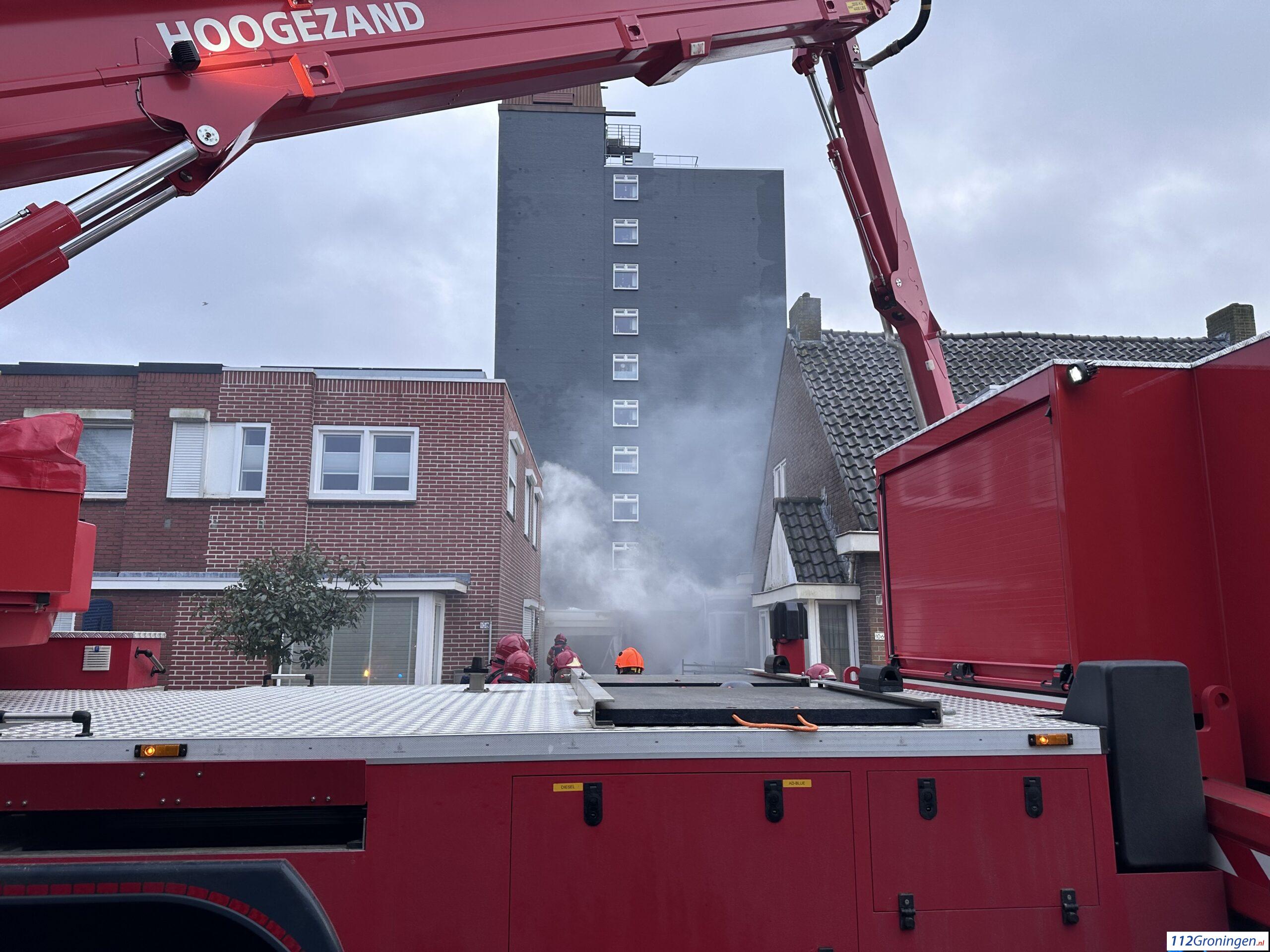 Hoogezand- In een gebouw aan de Sportterreinstraat in Hoogezand is een forse brand uitgebroken.