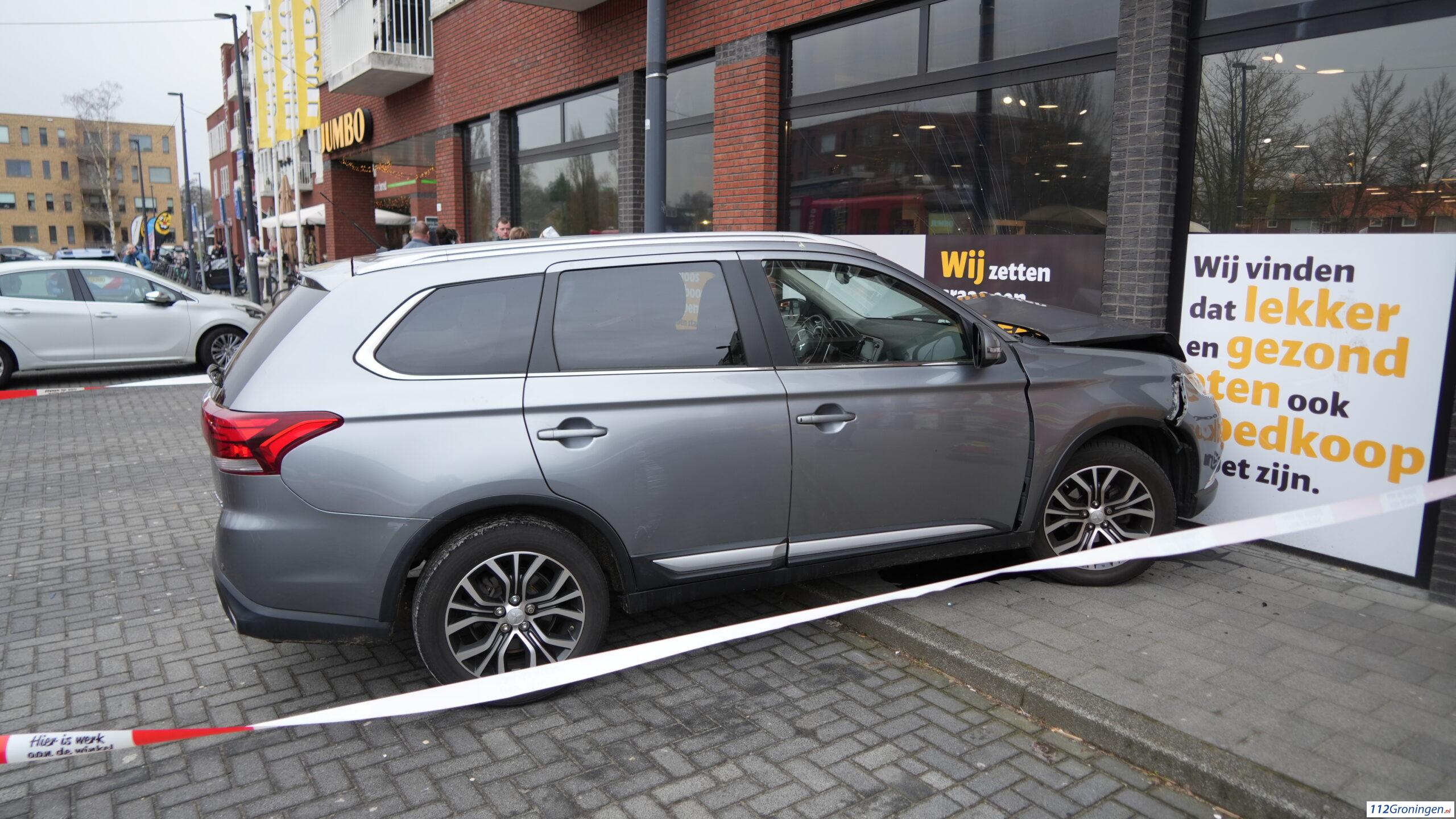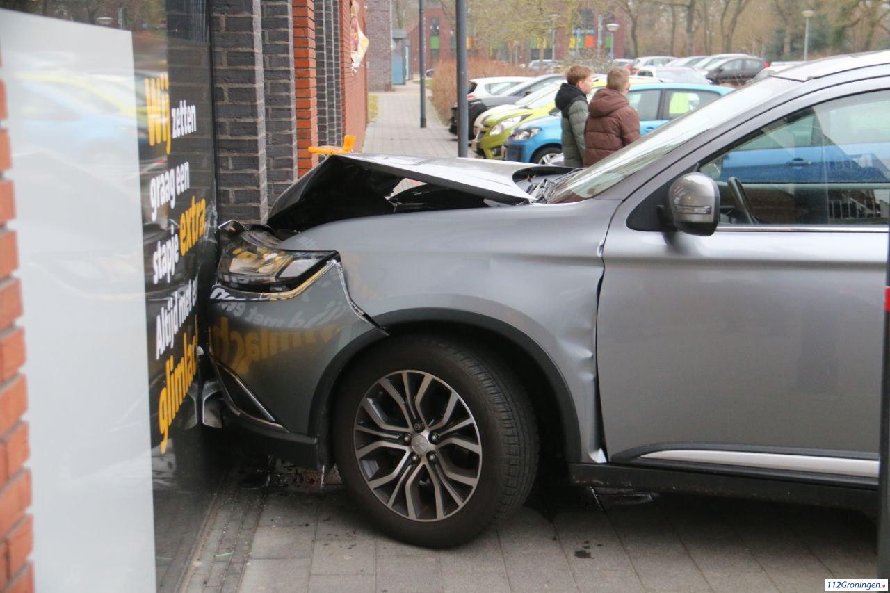 De toedracht is onbekend. De auto moest worden afgesleept. 1 meter verder naar links en hij stond in de winkel.