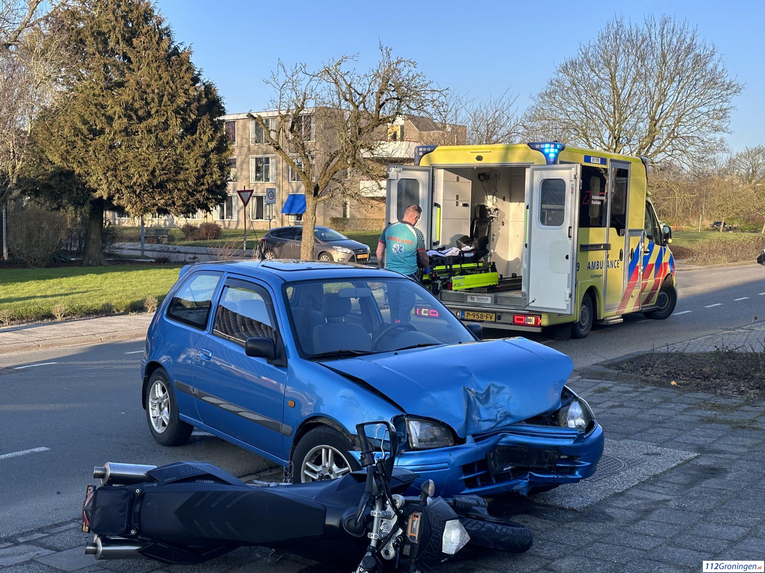 Op de Hoofdstraat kwamen een motorrijder en een automobilist met elkaar in botsing. Door de klap raakten beide voertuigen zwaar beschadigd. Hulpverleners hebben zich ontfermd over de betrokkenen en hen gecontroleerd op eventuele verwondingen.