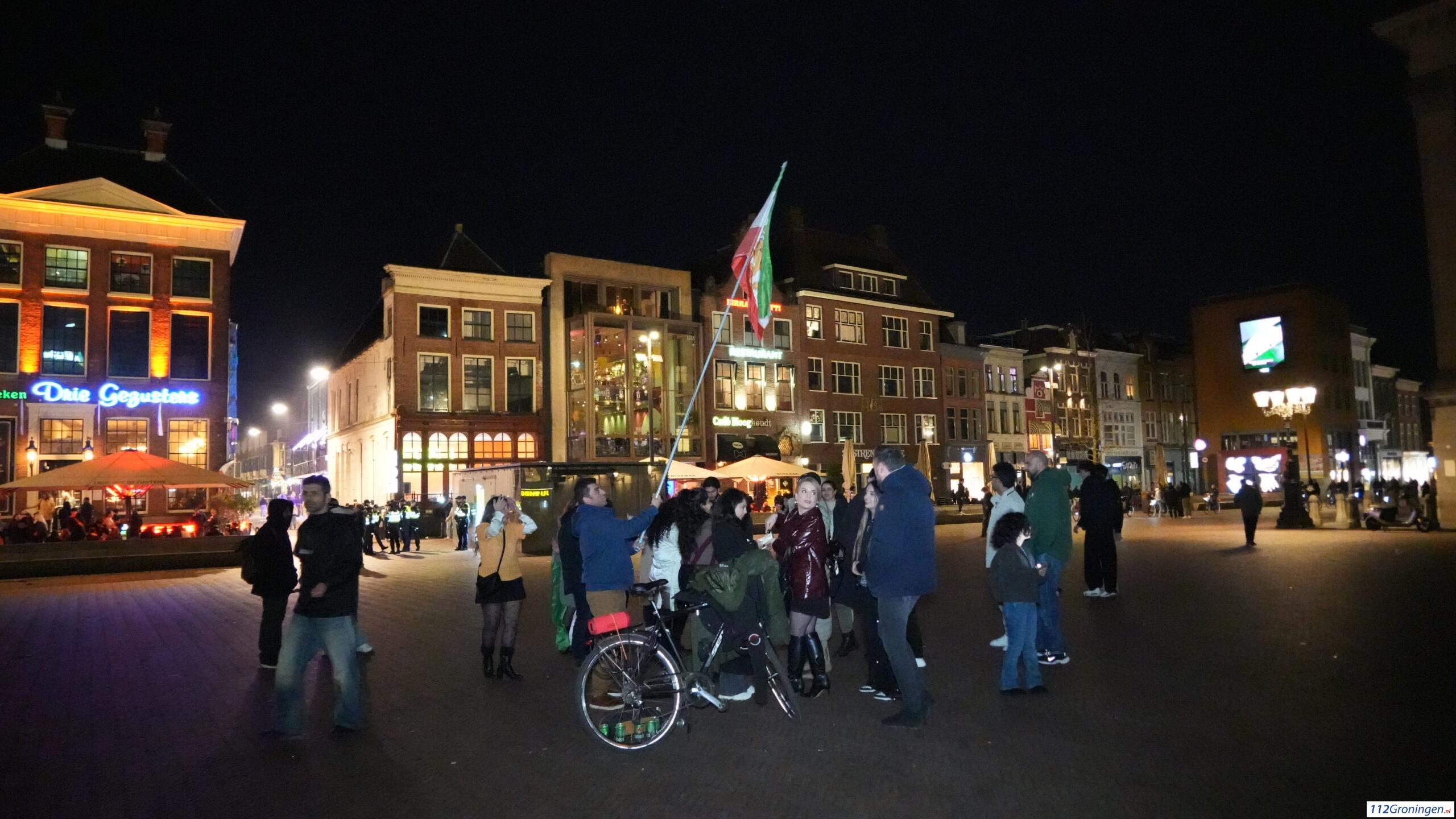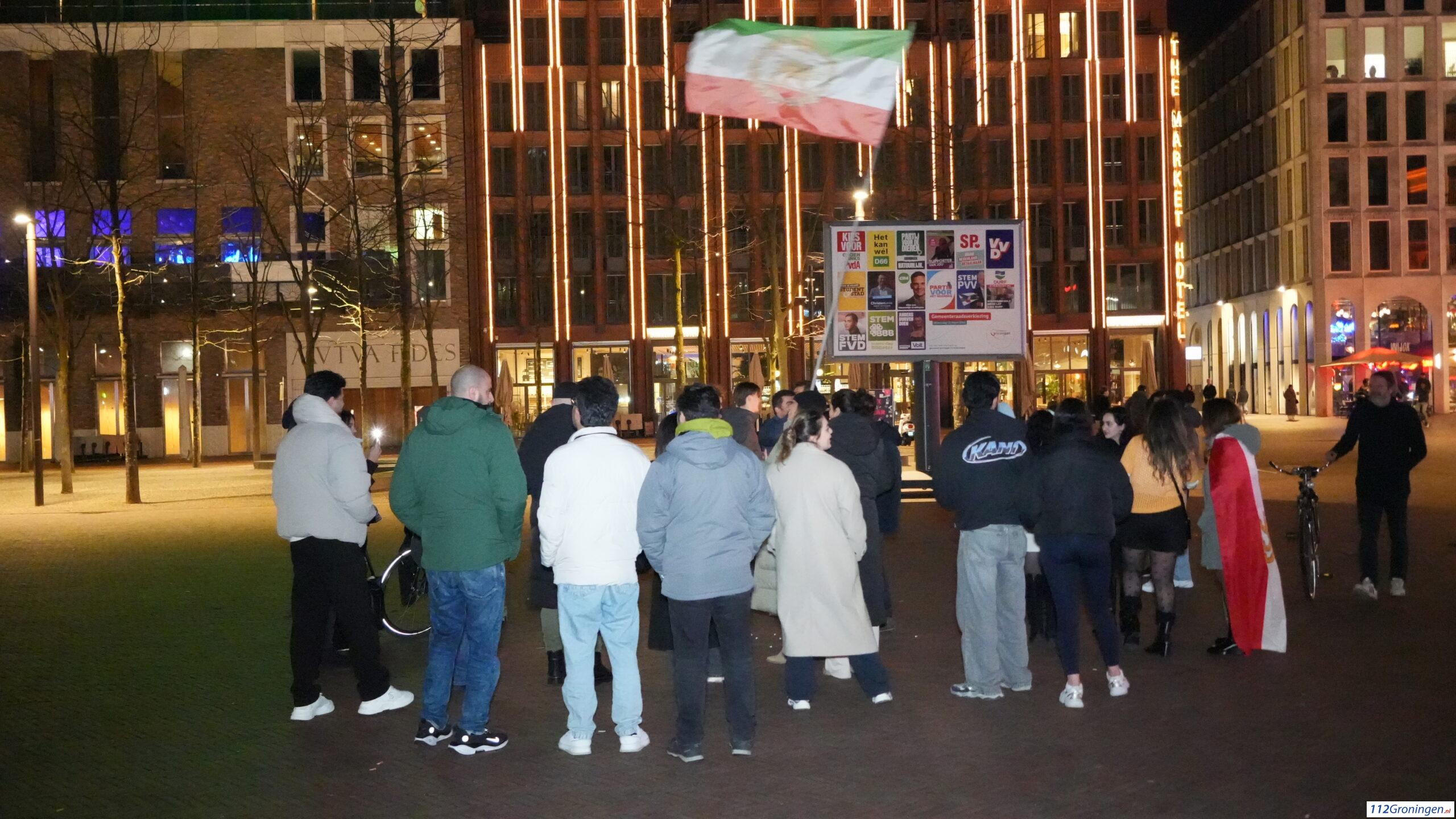 Groningen – Vanwege de dood van de Iraanse leider Ayatollah Khamenei die door Donald Trump is bevestigd zaterdagavond is er op de Grote Markt een klein feestje gaande.