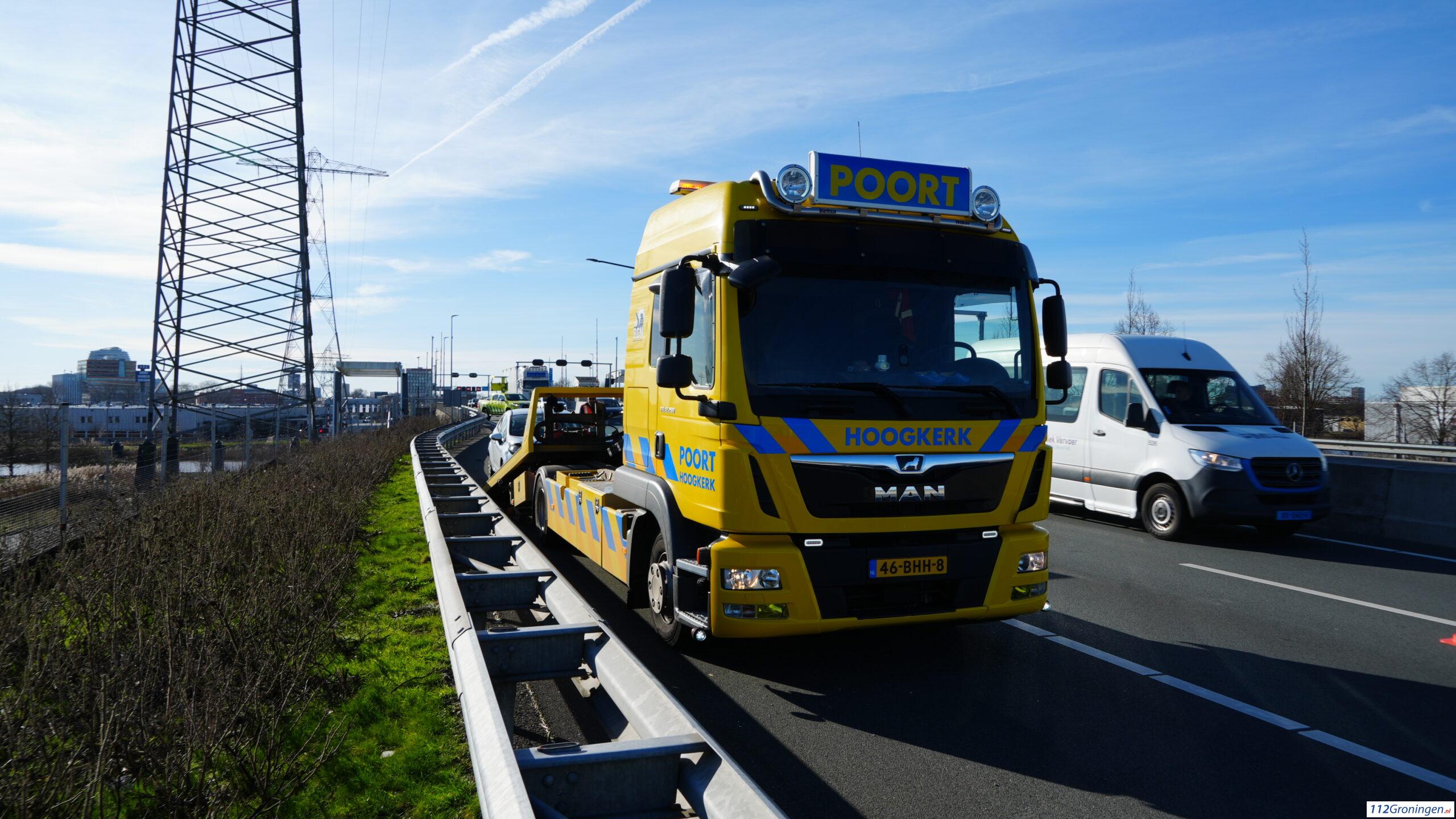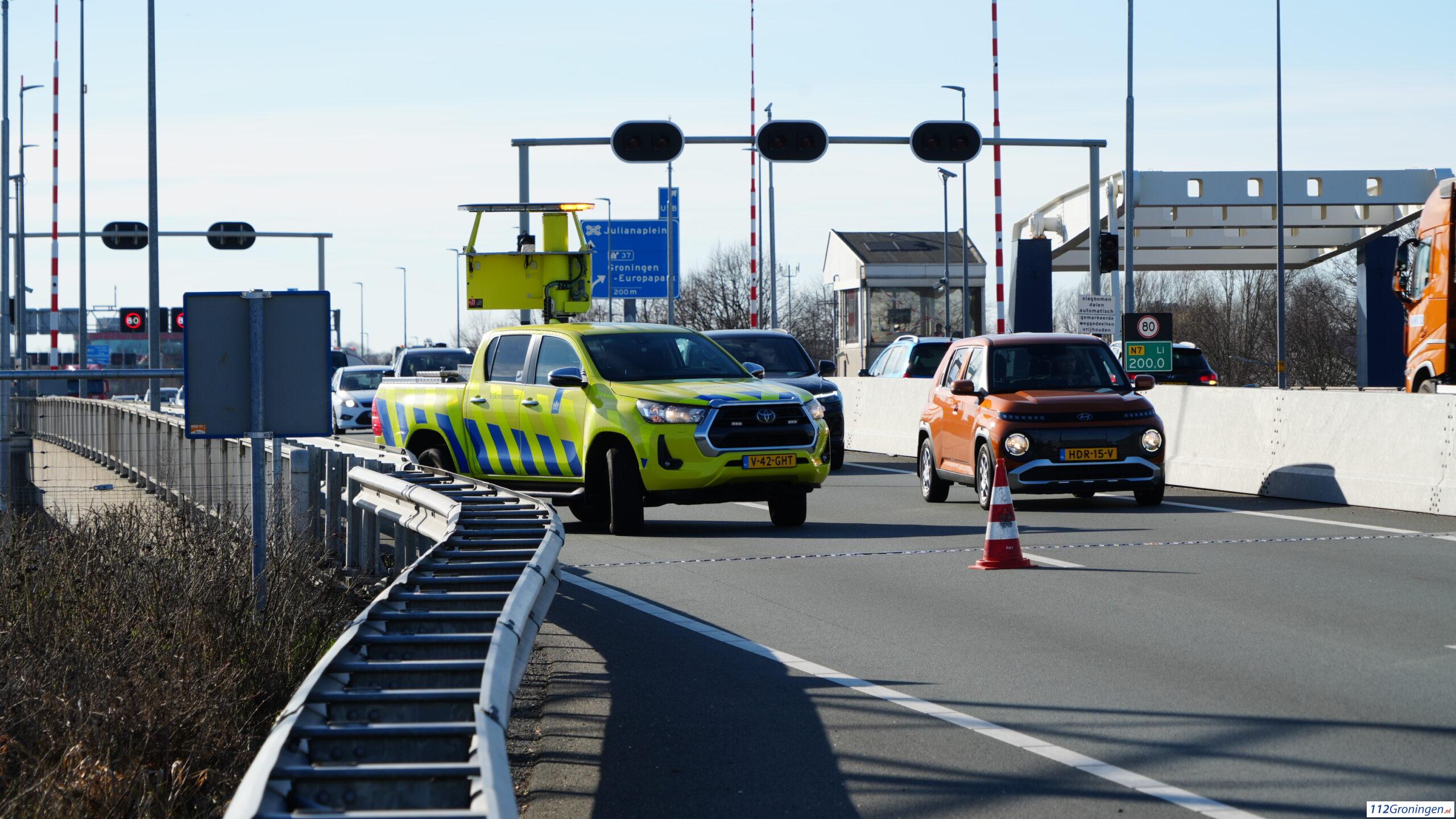 Groningen- Op de N7 net na de hoge Euvelgunnerbrug in de richting van knooppunt Euvelgunne heeft maandagmiddag rond 15:10 uur een kop/ staart aanrijding plaatsgevonden tussen twee auto’s.