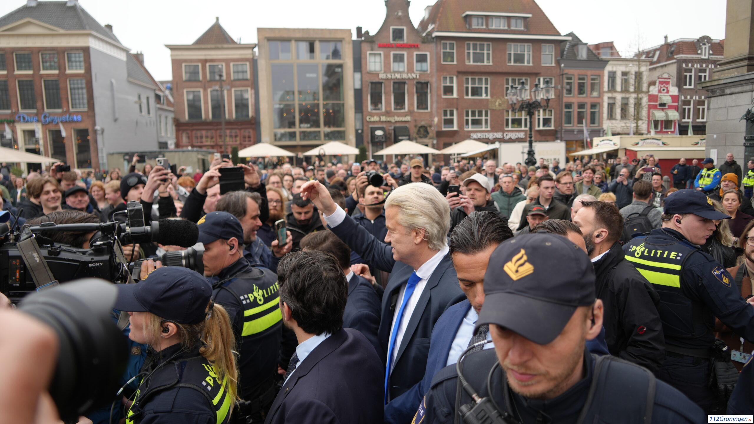 Groningen- Zaterdag om 13:00 is politicus is Geert Wilders begonnen met zijn campagne op de Grote Markt in Groningen. Hij voerde campagne tegen de AZC’s in Nederland.