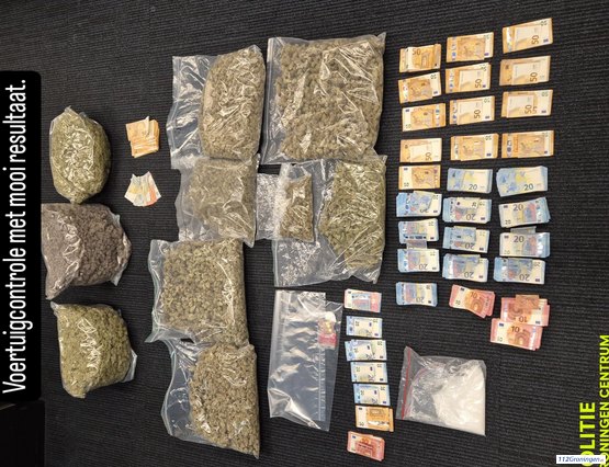 Groningen – Dinsdagavond trof de politie bij een voertuigcontrole een flinke hoeveelheid softdrugs en geld aan. De daaropvolgende doorzoeking van een woning leverde nog meer soft- en harddrugs op.