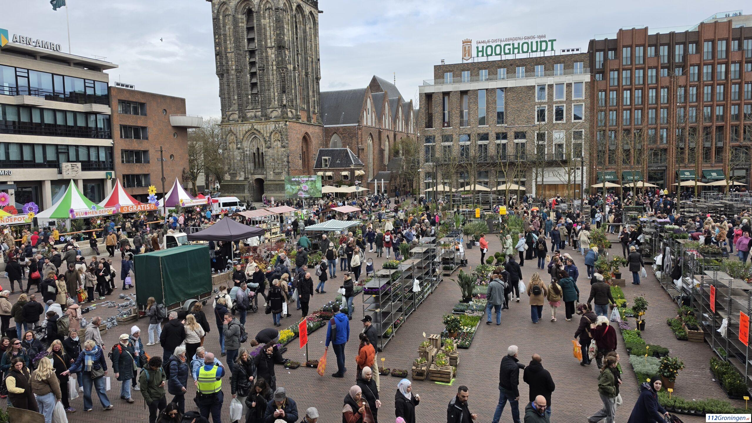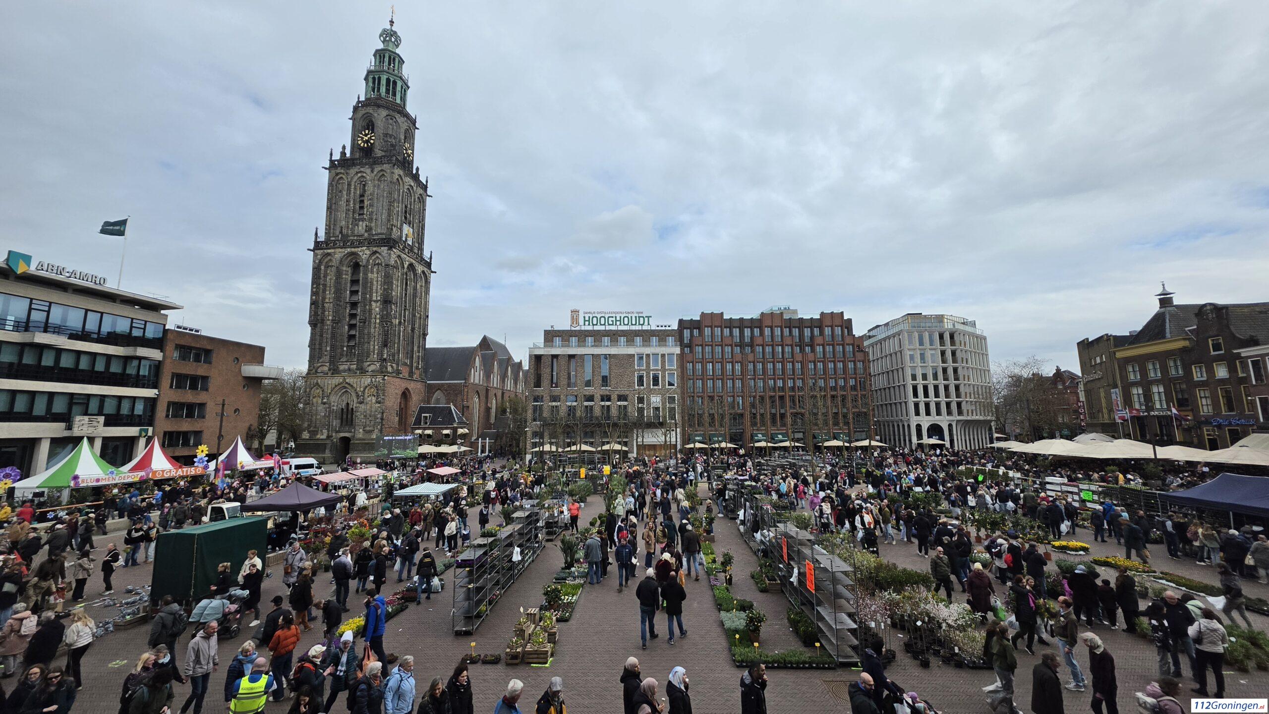 Groninge – Het is lekker druk op de jaarlijkse bloemenmarkt in de binnenstad van Groningen.