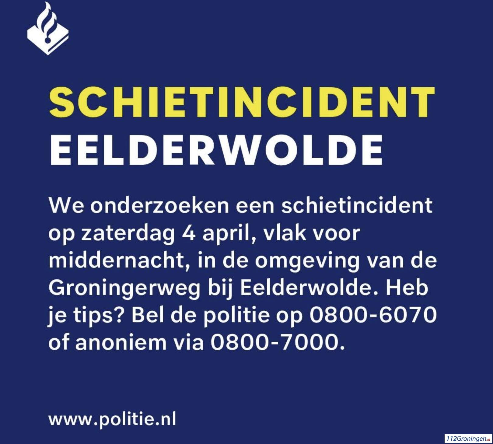 Eelderwolde  – Rond 0:00 uur zaterdag op zondagnacht Eerste Paasdag vond er een schietincident plaats in de buurt van het Weemhofseiland in Eelderwolde.