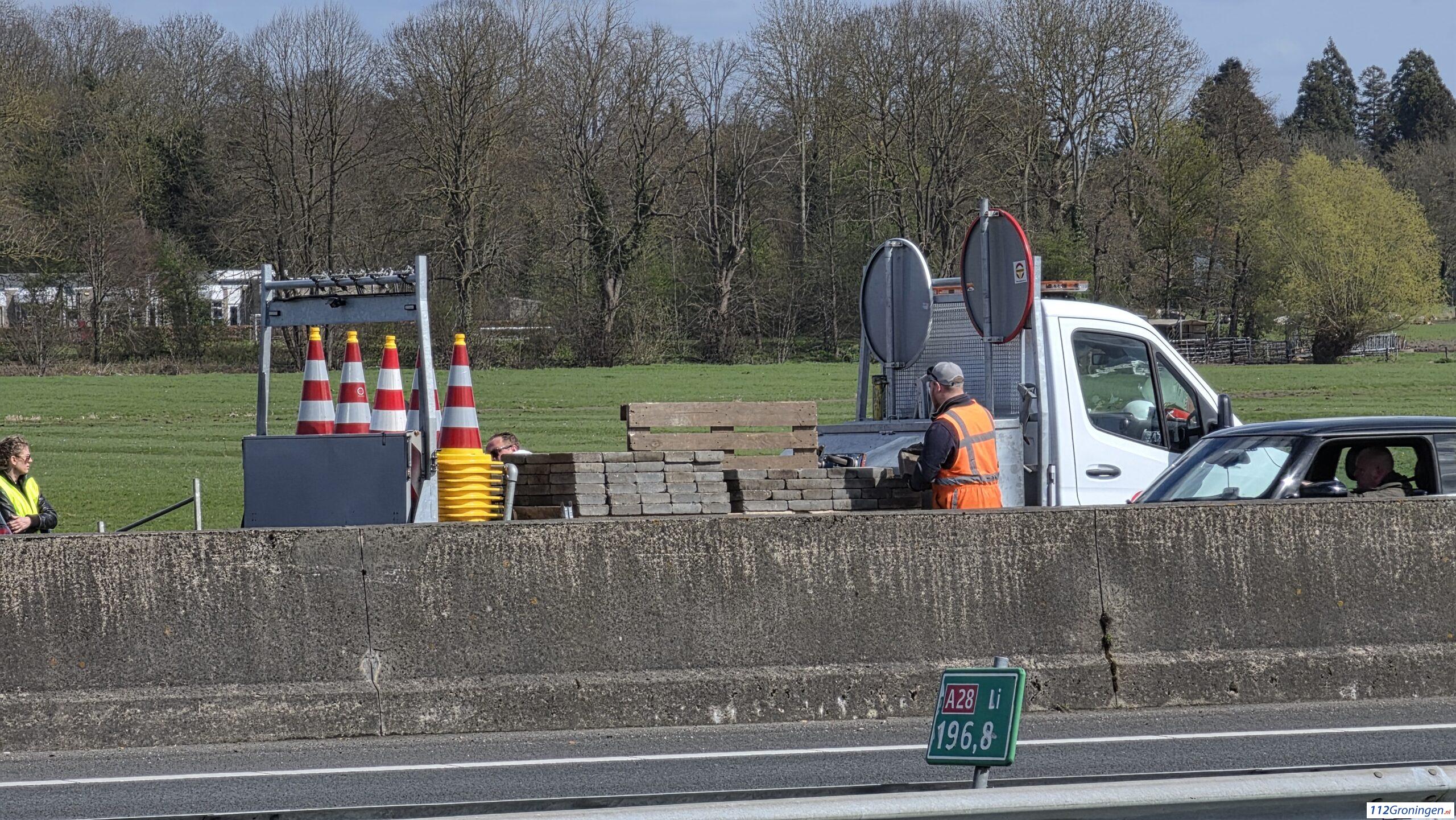 Groningen – Op de A28 tussen Haren en Groningen is zondag een lange file ontstaan nadat een as van een aanhanger met stoeptegels kapot is geraakt. Het incident gebeurde in de richting van Groningen en zorgde al snel voor flinke verkeershinder vanuit Haren.
