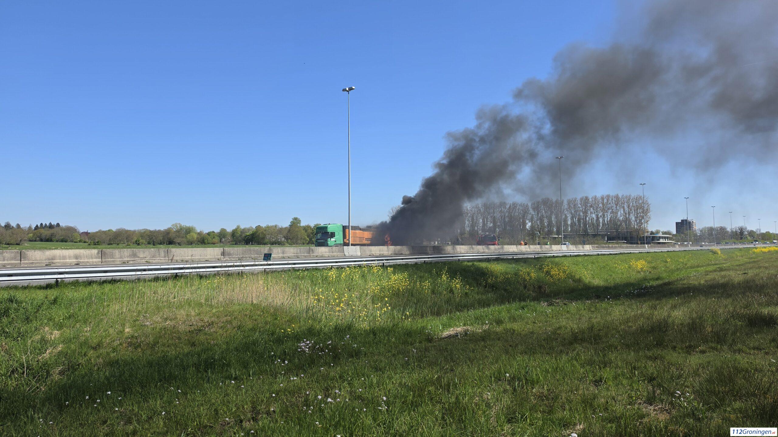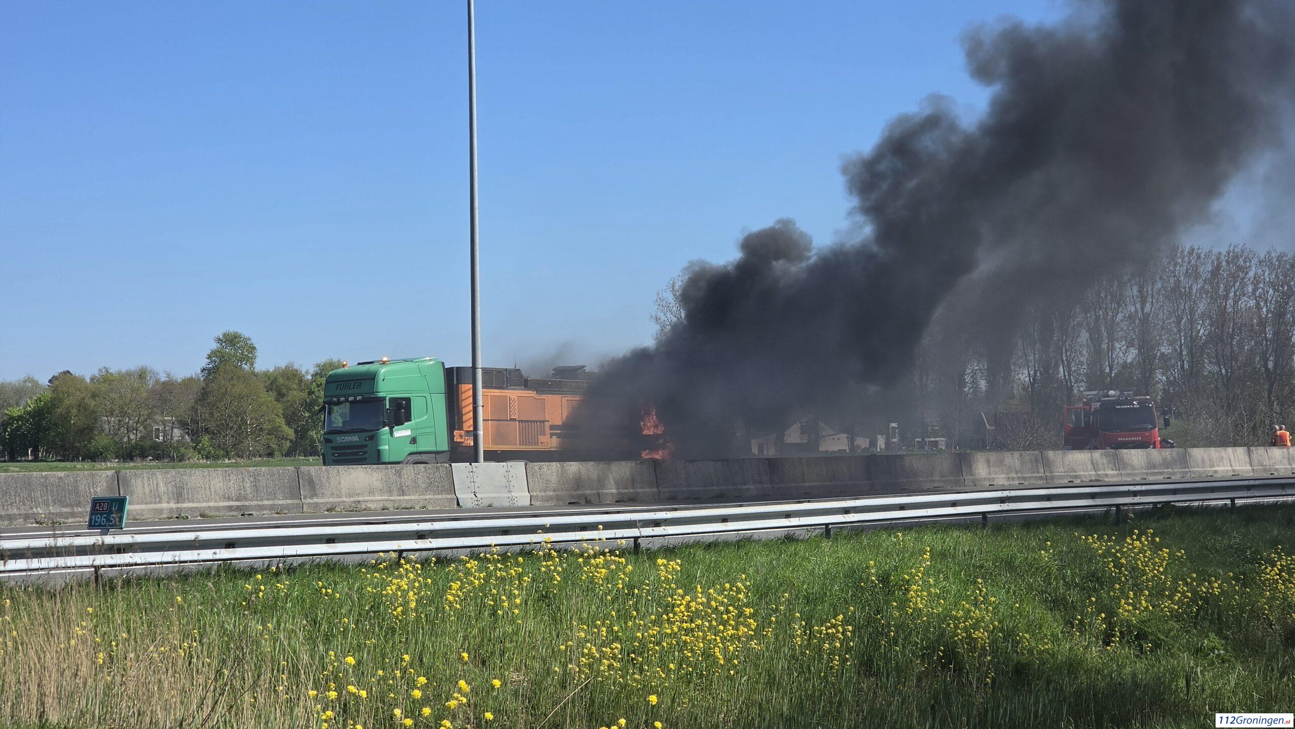 Groningen – Op de A28 tussen Haren en Groningen stond woensdagmiddag een vrachtwagen in brand. Hulpdiensten zijn ter plaatse. Er kwam veel rook vrij.