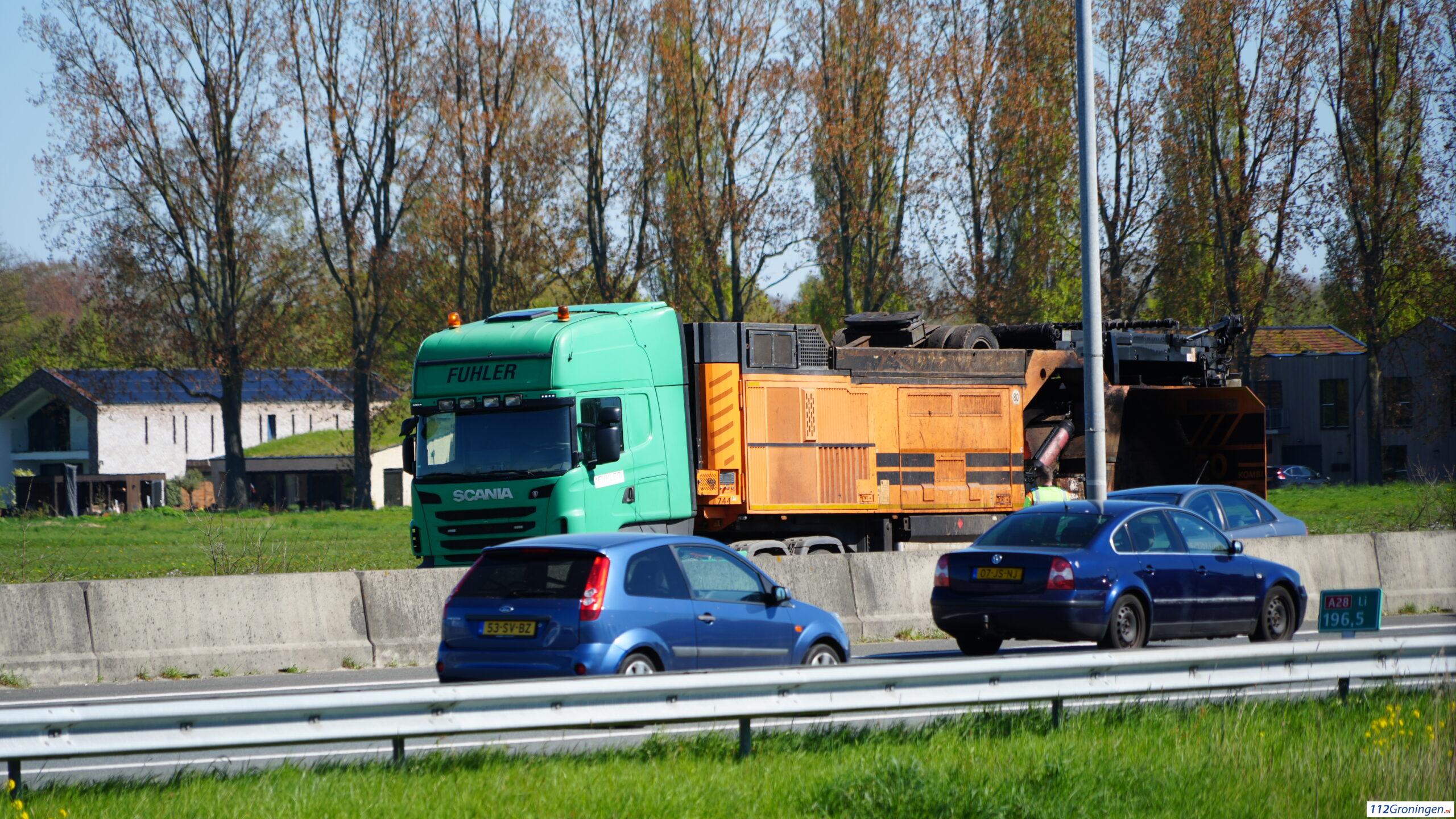 Vrachtwagen vat vlam op de A28