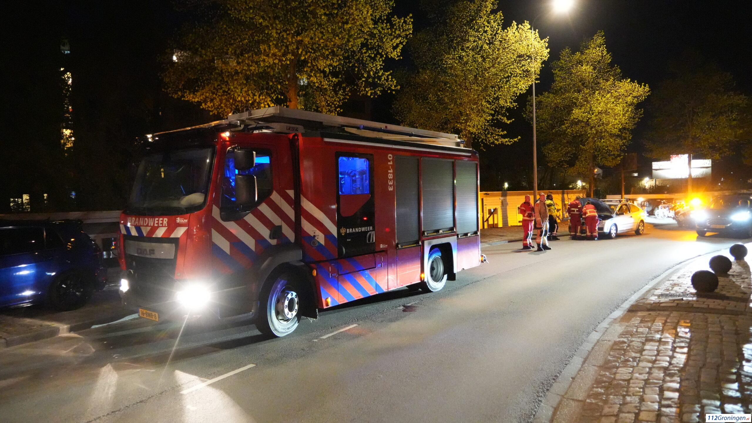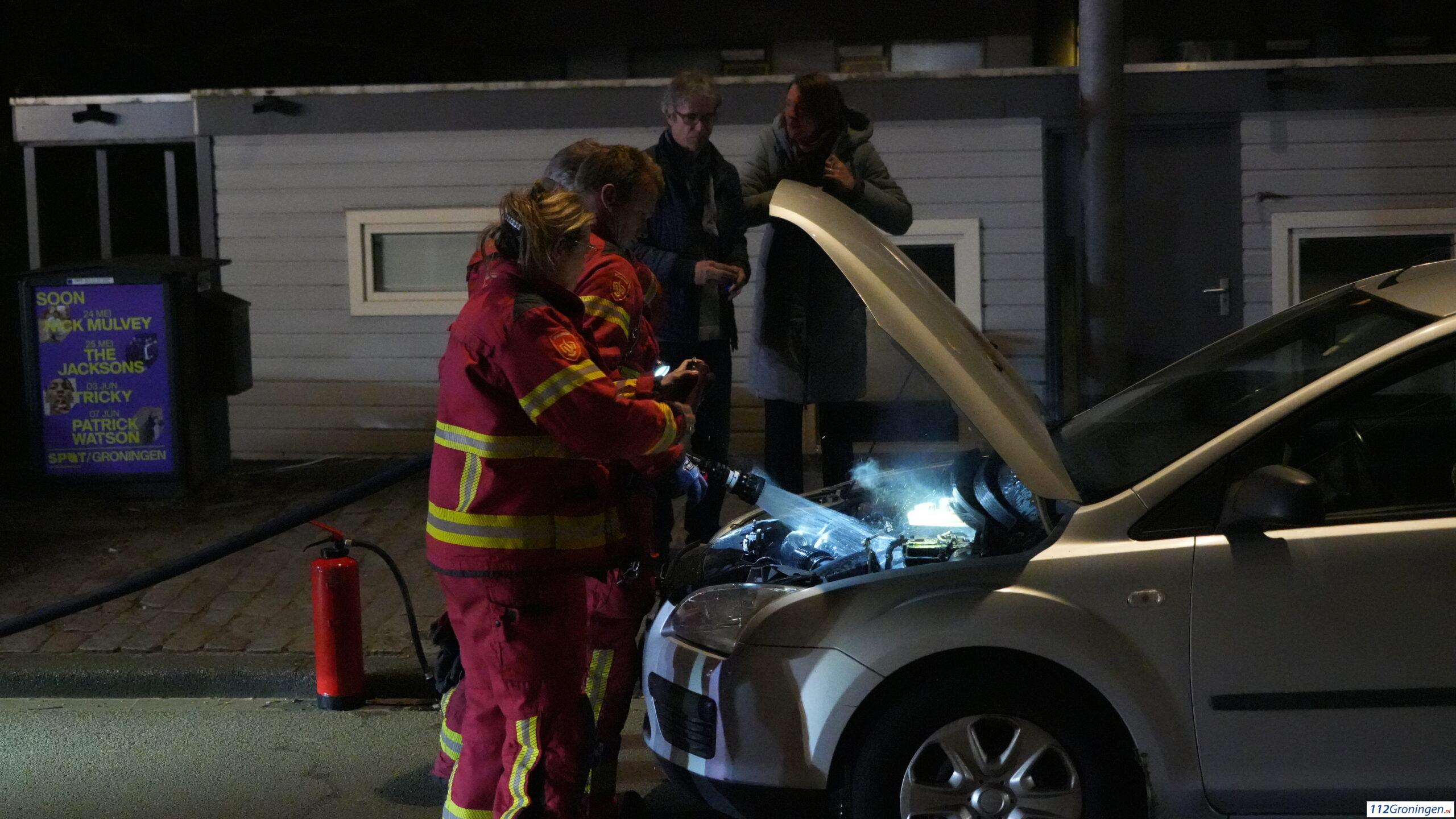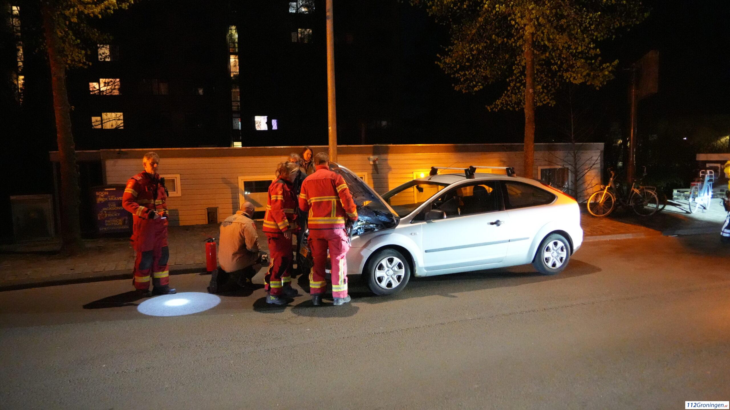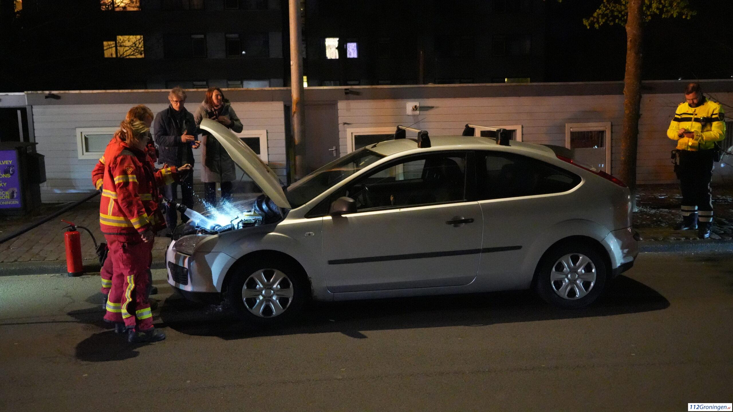 Groningen – Op de Aweg heeft zondagavond een auto tijdens het rijden vlam gevat.