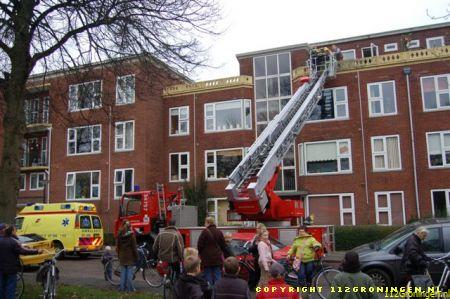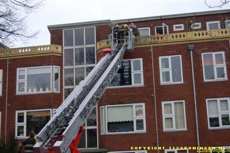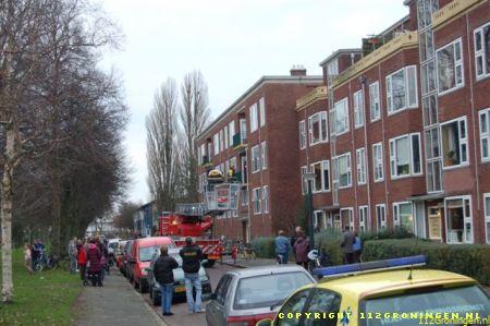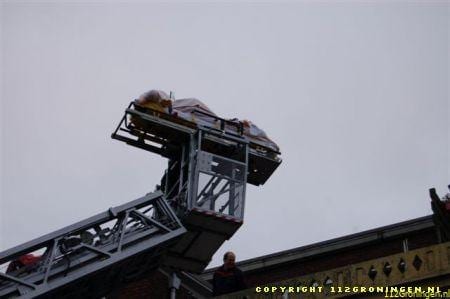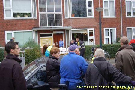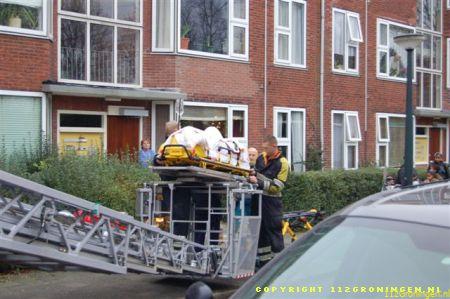 Groningen – Woensdagmiddag moest de ladderwagen(757) van de brandweer in aktie komen met prio 1 om een man uit huis te halen aan de Pioenstraat. Hij was ernstig ziek en lag aan het infuus en de beademing. Via het trappenhuis kon hij niet na beneden vandaar dat de brandweer assisiteerde bij deze klus op hoogte. Geruchten van alle buurtbewoners waren dat de man zou zijn overleden en dat hij er al een paar dagen zou liggen(post was niet geleegd enz.) maar daar was geen sprake van gelukkig toen hij beneden kwam . Het betrof een ziektegeval. Hij ging snel naar het Umcg voor opname. De brandweer werkt altijd goed samen met politie en ambulancedienst.