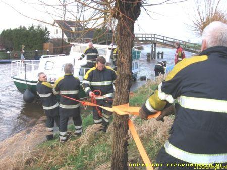 Gerkesklooster – In gerkesklooster werd de hulp van de brandweer Buitenpost geroepen voor een losgeslagen boot. Deze boot dreef los rond en dreef tegen een brug aan. Het scheepje is naar de wal gehaald en goed vast gezet aan een paar bomen.