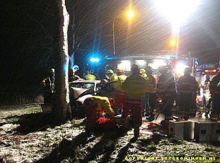 Door onbekende oorzaak reed hij in een haakse bocht rechtdoor en botste tegen een boom. Door de botsing zat hij bekneld in zijn auto. De brandweer bevrijdde hem uit de auto. Het slachtoffer werd vervolgens met zwaar lichamelijk letsel naar een ziekenhuis gebracht. De toestand van het slachtoffer is onbekend. (Laatste foto: Martijn van Dijken// foto van Kantens, zie ander item voor meer foto s)