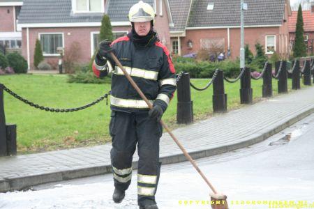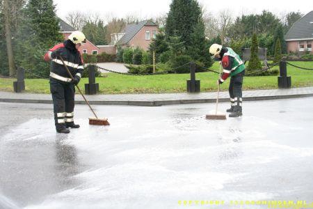 De brandweer maakte de wegdek schoon met een speciaal middel.