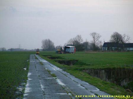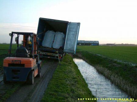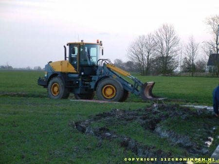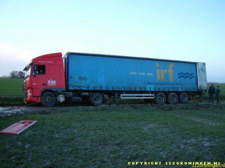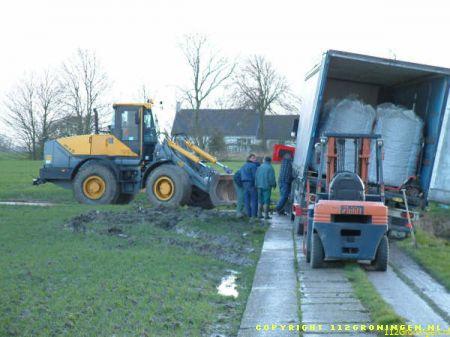 Middelstum – Vanmiddag raakte er in Oosterburen een vrachtwagen vast in de berm. De berm was door de regen veranderd in een moeras. Op eigen kracht kon de vrachtwagen niet meer uit de berm komen. Een shovel van Loonbedrijf van Dijken moest er aan te pas komen om het voertuig uit de berm te trekken. Na een half uur was de vrachtwagen uit de berm.