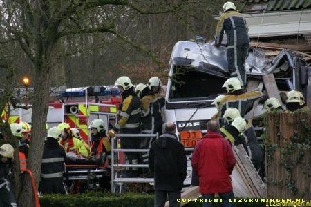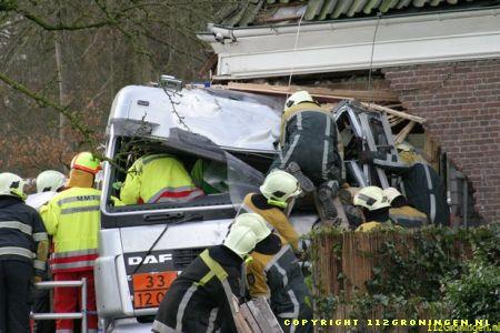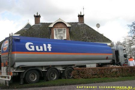 Westervelde(Dr.) – Op de Hoofdweg in Westervelde is maandagmorgen rond 10 voor 11 de chauffeur van een tankauto(Gulf) geladen met benzine een woning binnengereden. De chauffeur die waarschijnlijk onwel is geworden kwam bij het ongeval klem te zitten in zijn cabine. Hij is bevrijd door de brandweer van Norg die assistentie kreeg van korpsen uit de omgeving. Ook het MMT uit Groningen kwam ter plaatse. De chauffeur is ter plaatse behandeld aan zijn verwondingen en is later overgebracht naar het ziekenhuis. De tankauto van benzinemaatschappij Gulf zat vol met benzine. De tankauto zal waarschijnlijk eerst worden leeggepompt voordat met de berging kan worden begonnen. De bewoners waren niet aanwezig. Die waren afgelopen vrijdag op vakantie gegaan naar Frankrijk. De woning raakte voor een groot gedeelte ontzet en zal mogelijk voor een gedeelte vervangen moeten worden. Chauffeur komt uit het Groningse Bedum.