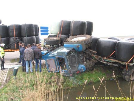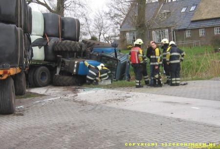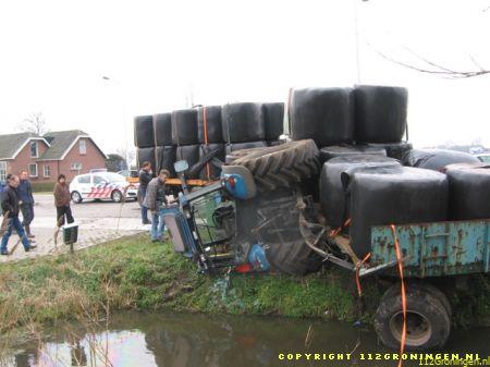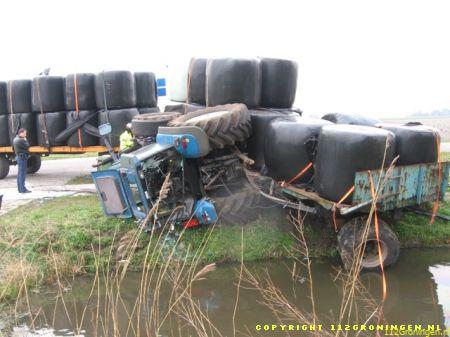 De trekkerbestuur kwam klem te zitten met zijn voet en kon mede dankzij hulp van omstanders zichzelf bevrijden De brandweer van Anjum kwam ter plaatse en kon na een korte inzet weer terugkeren naar de kazerne. Hoe het ongeluk precies kon gebeuren is niet bekend. De trekkerchauffeur is met de ambulance overgebracht naar het Talma Sionsberg ziekenhuis in Dokkum. De politie stelt een nader onderzoek in.