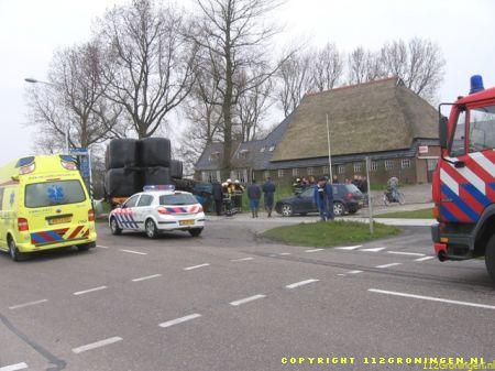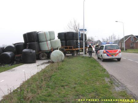 EE (Fr.)- Een trekker geladen met twee aanhangers met kuilbalen is zaterdag rond 11.30 uur gekanteld. Dit gebeurde bij de oprit van een boerderij op de kruising Humaldawei (N358) met de Grienewei nabij Ee.