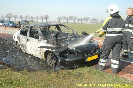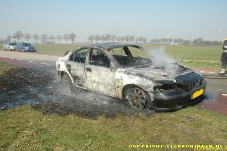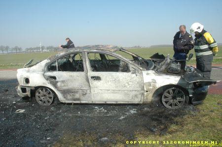 Auto verwoest door vlammenzee in Woldendorp