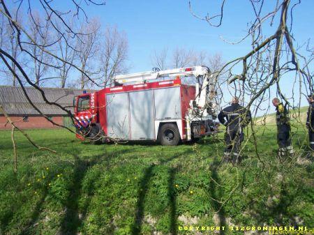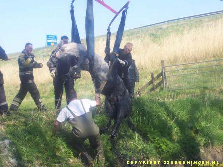 Appingedam – Donderdag raakte een paard in de sloot bij Appingedam.